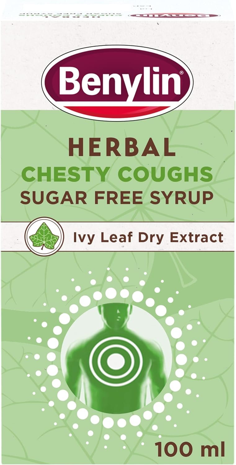 BENYLIN Herbal Chesty Coughs Sugar Free Syrup.100 ml, Non-Drowsy Herbal Cough Medicine, with Naturally Derived Ivy Leaf Dry Extract