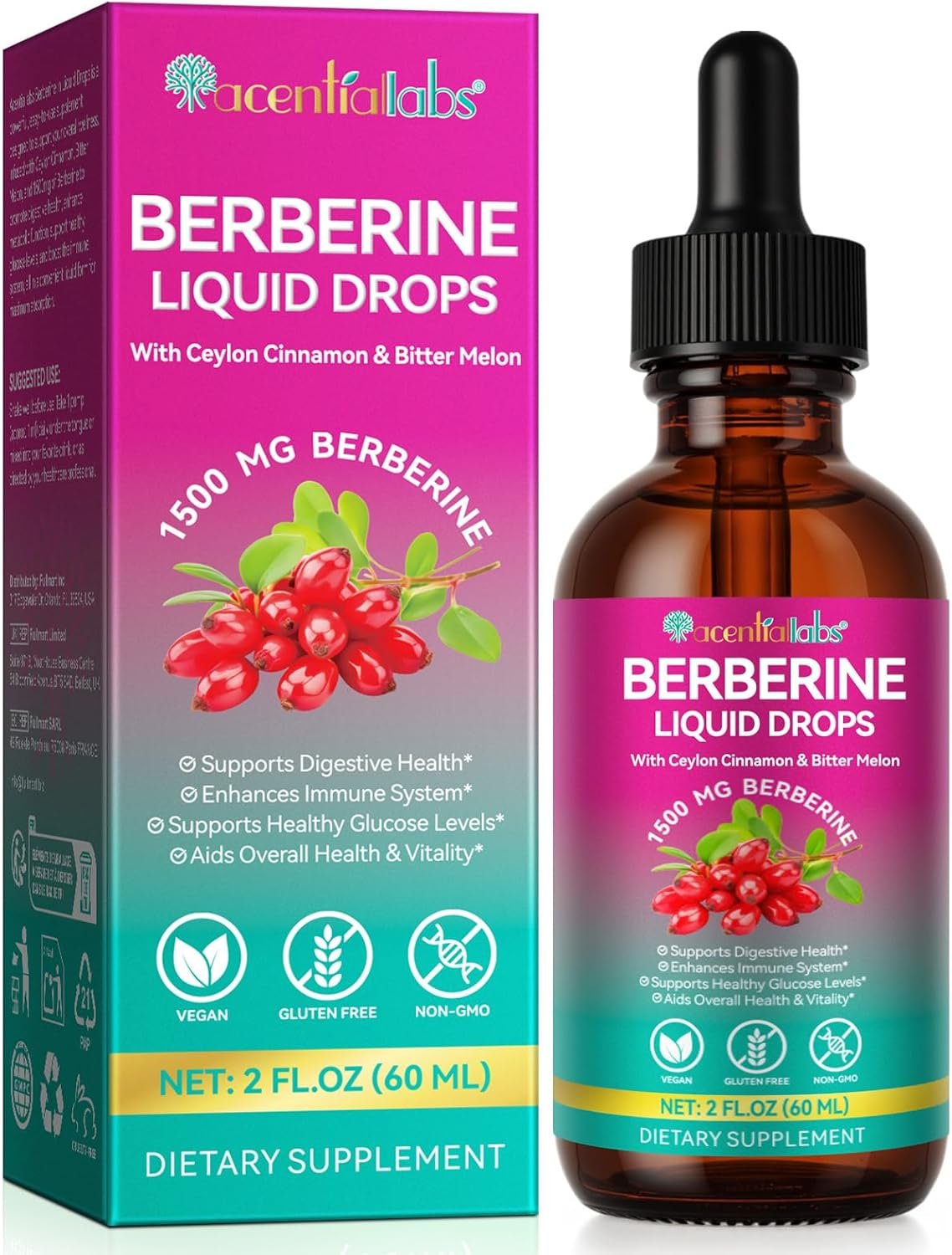 Berberine Supplement with Ceylon Cinnamon, Berberine Liquid Drops with Turmeric Curcumin, Ceylon Cinnamon, Bitter Melon, Digestive Health Support, Immune Support, 60ml