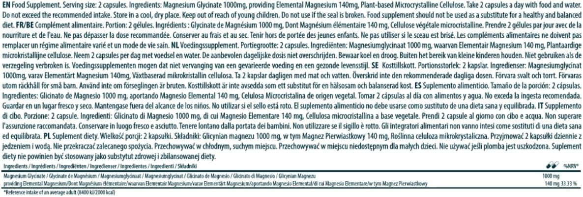 HIGH-STRENGTH FORMULA: 1000mg of Magnesium Glycinate per serving for potency and bioavailability