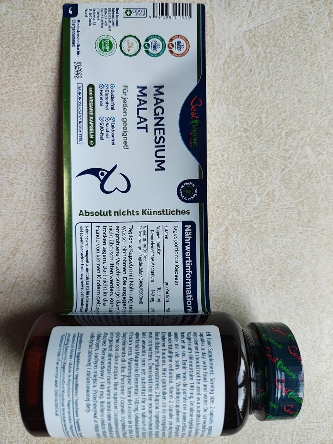 Best Immune, Magnesium Malate 500mg – High Strength Supplement for Absorption and Energy Support – 100 Vegan Capsules