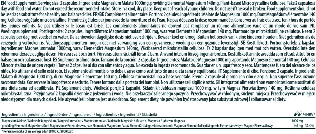 ABSORPTION: Formulated with 500mg Magnesium Malate for efficient absorption and utilization by the body