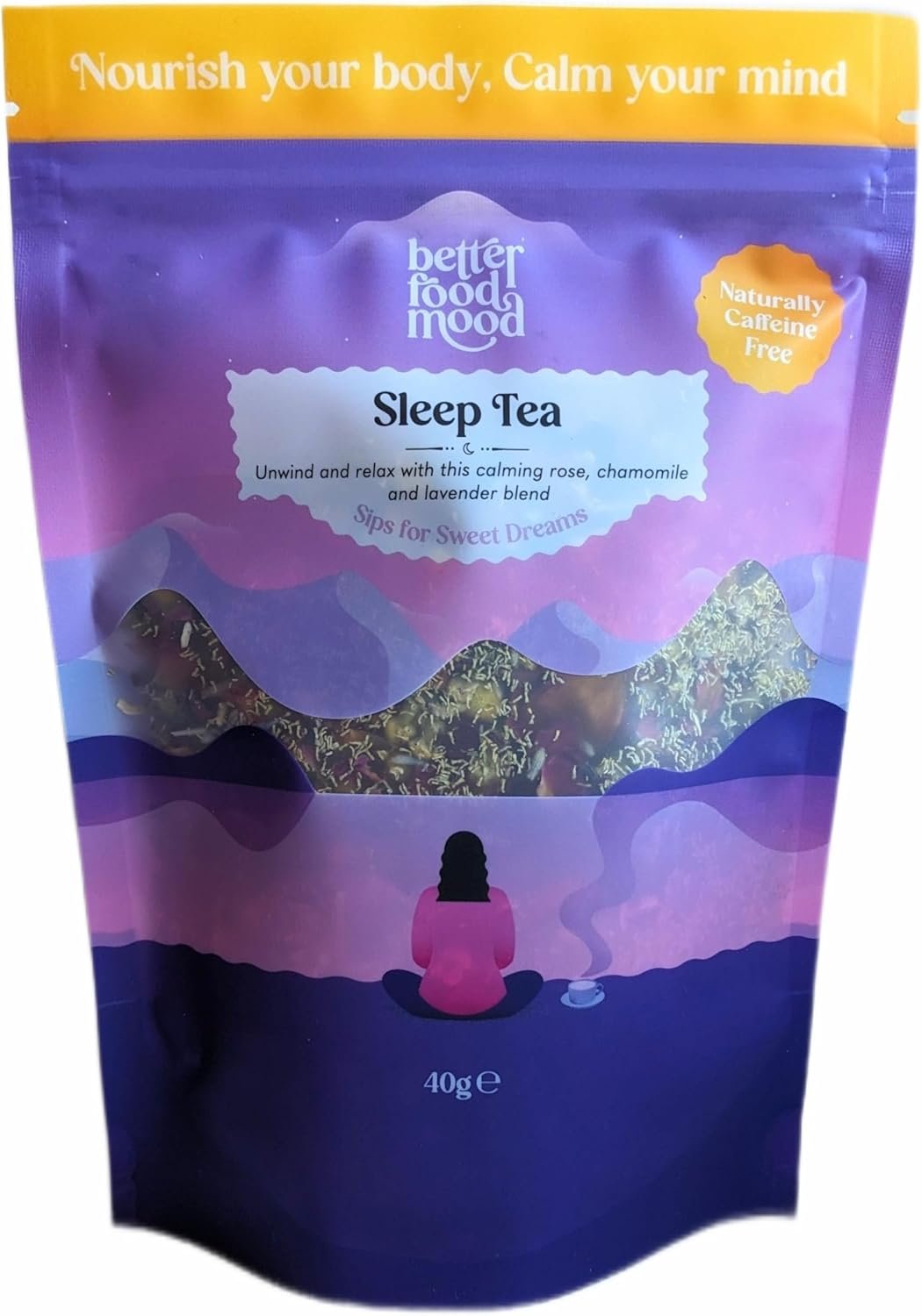 Better Food Mood Sleep Tea Rose Chamomile & Lavender Loose Leaf Tea 40g | No Caffeine | Sleep Well Herbal Tea – Relax and Calm Your Senses