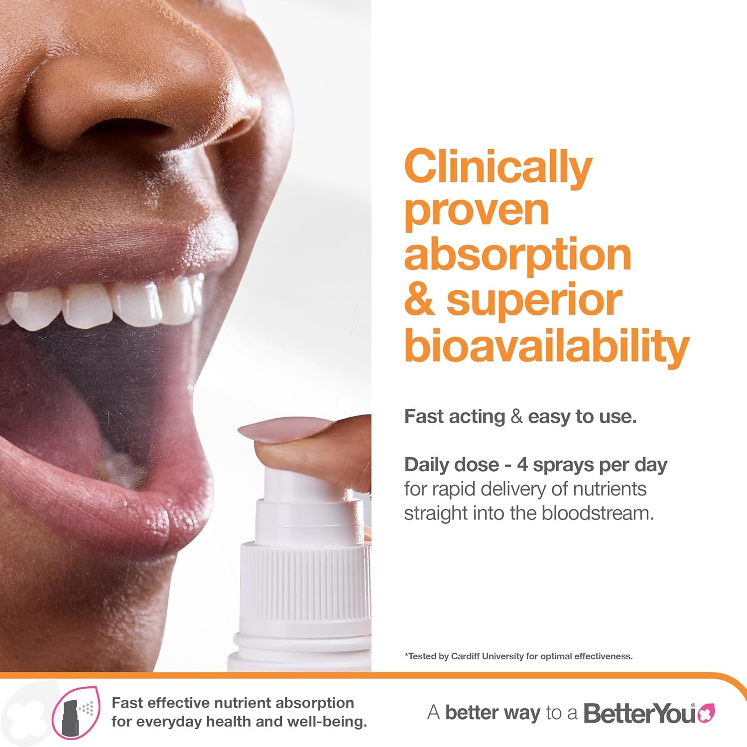 BetterYou B-Complete Oral Spray, Fast Acting B-Complex Supplement, High Strength Blend of All 8 B-Vitamins, Natural Peach, Plum & Raspberry Flavour, 1-Month Supply