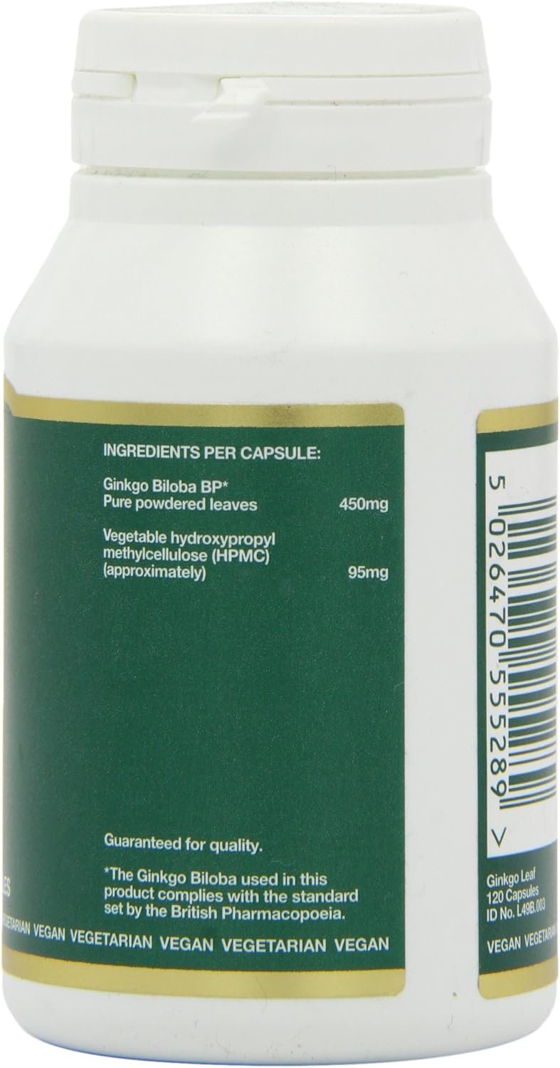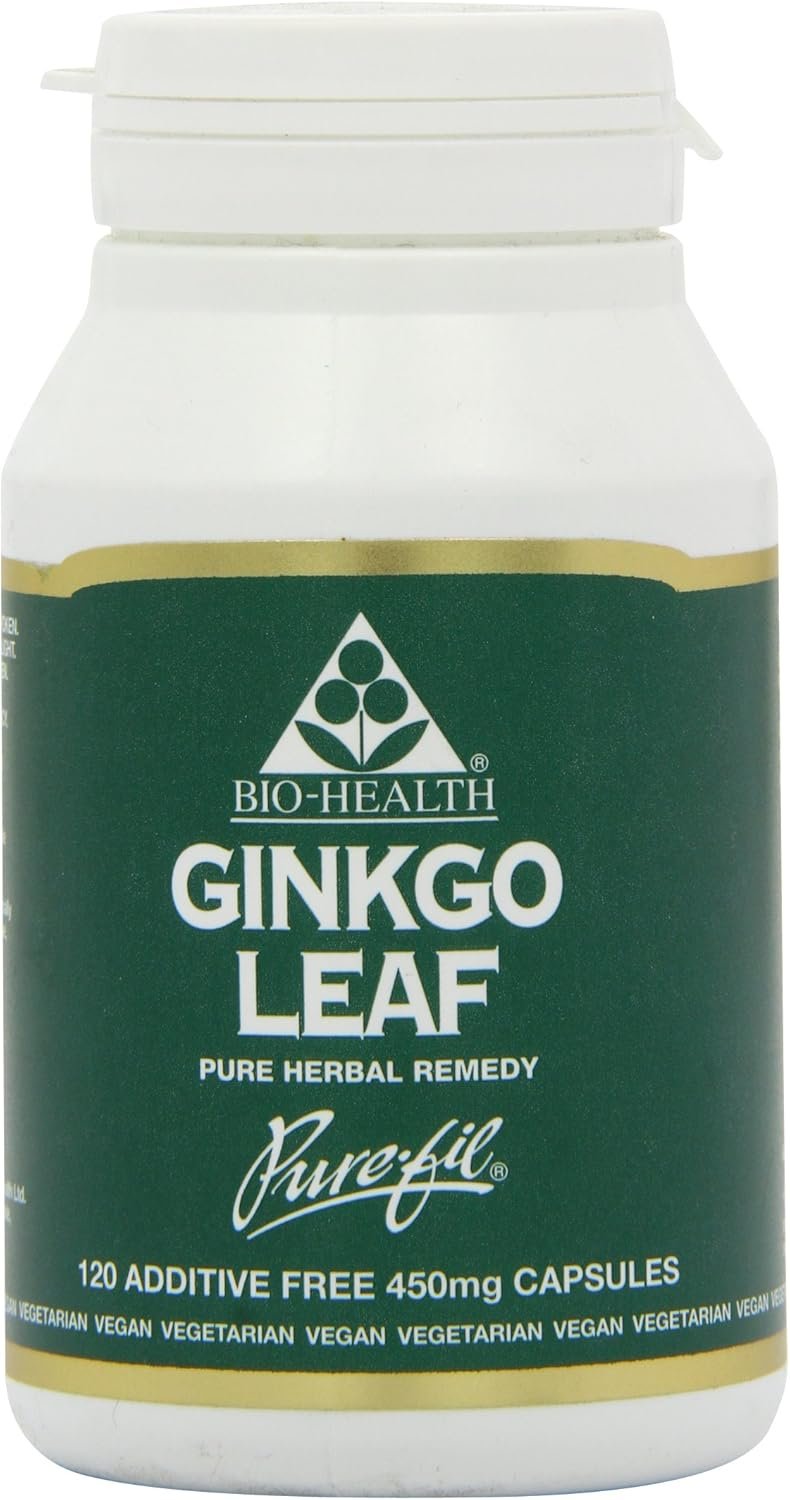 Bio-Health Ginkgo Leaf 450mg Pure Herbal Food Supplement, Supports Blood Circulation, Mental Performance and Boosts Energy Suitable for Vegetarians and Vegans, Additive Free, 120 Capsules