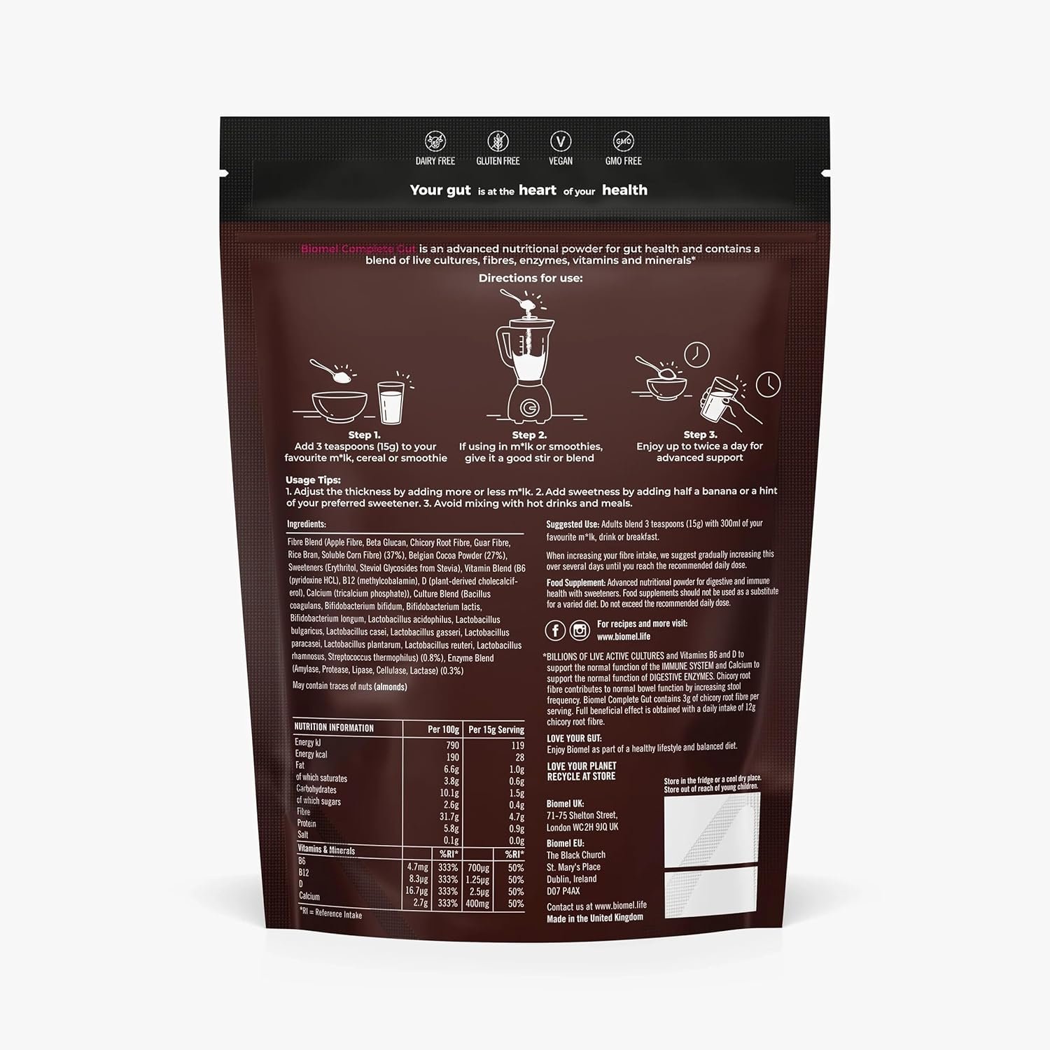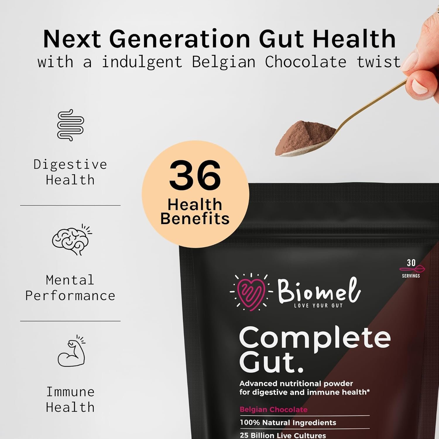 Biomel Complete Gut – Belgian Chocolate – Advanced Gut Health – 450g/30 Servings – Vegan Friendly – Gluten Free – Delicious & Effective