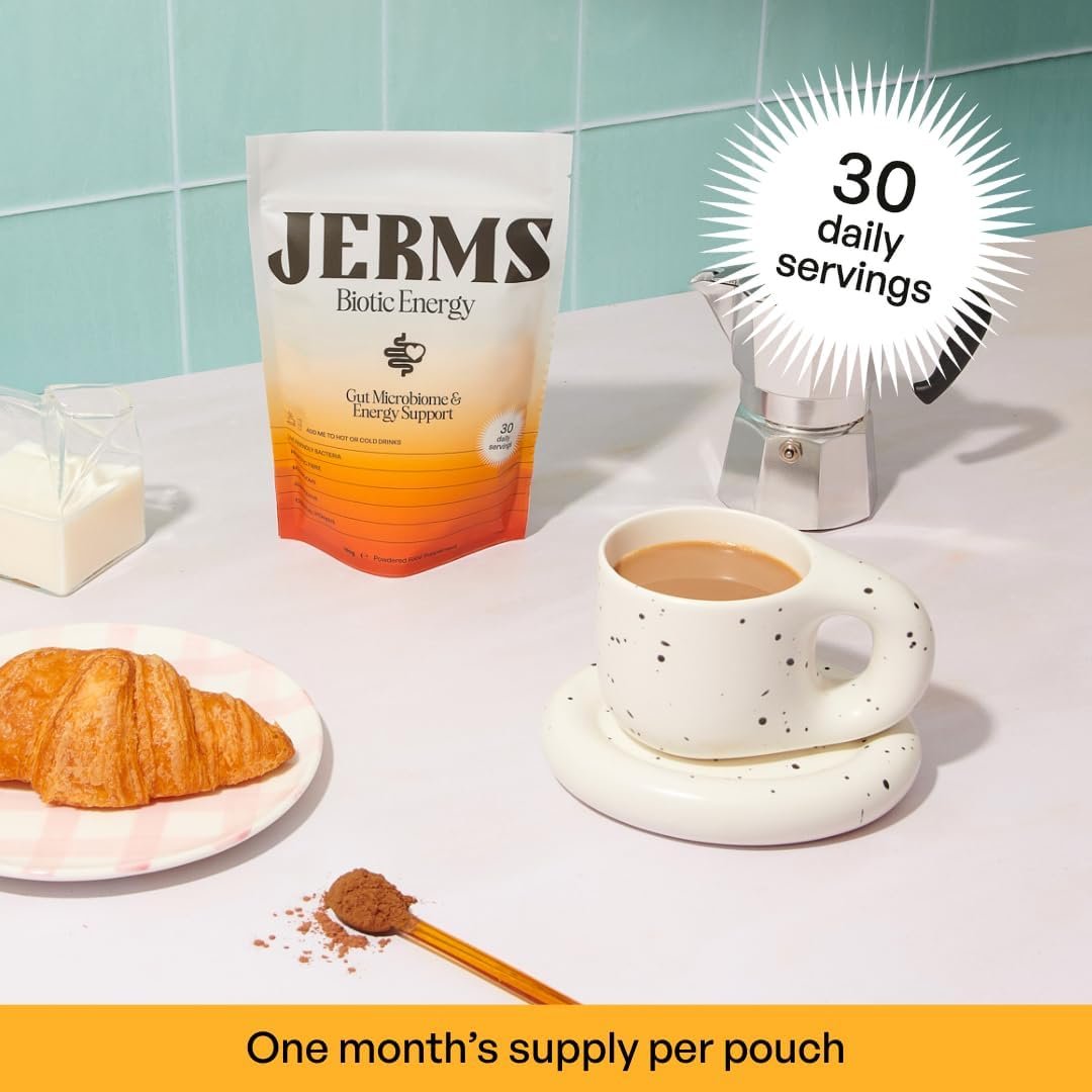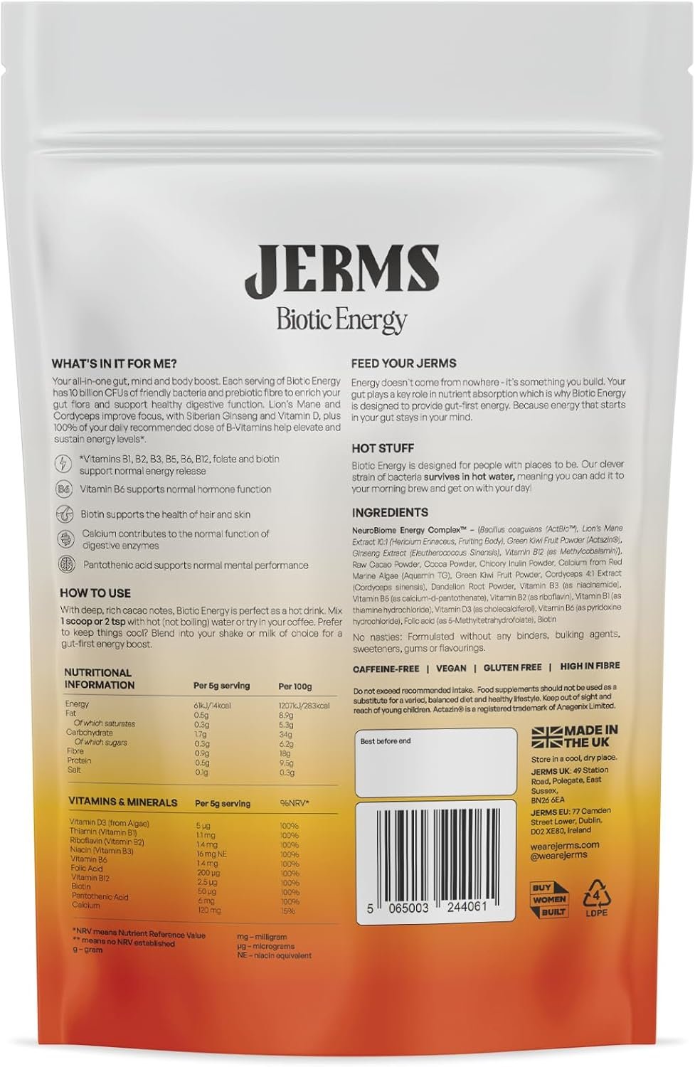 Biotic Energy Gut-First Energy Powder | Hot-Drink Friendly Probiotics, Prebiotics + Lion’s Mane | Raw Cacao, Caffeine-Free |100% Daily B & D Vitamins | High in Fibre | 30 Servings