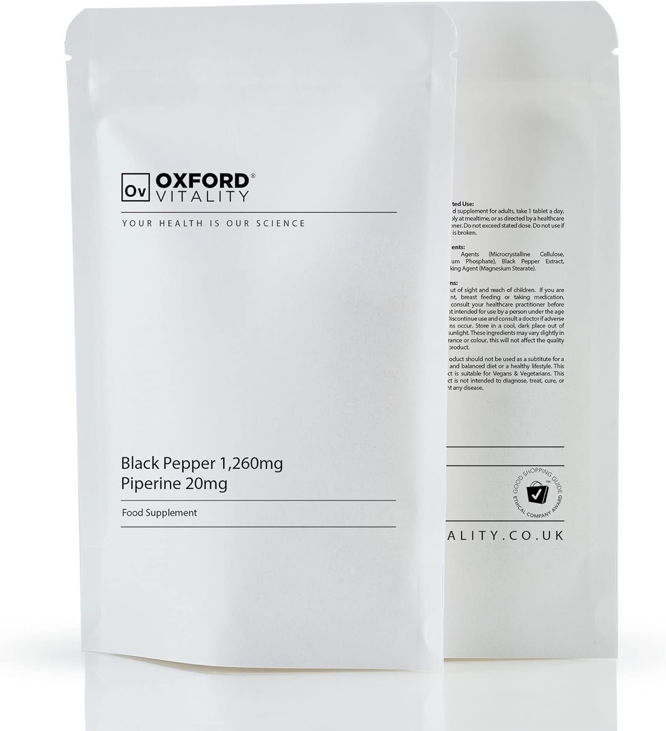 Black Pepper Tablets 1,260 mg, Piperine 20mg | Supplements for Appetite, Detox & Digestion | Oxford Vitality