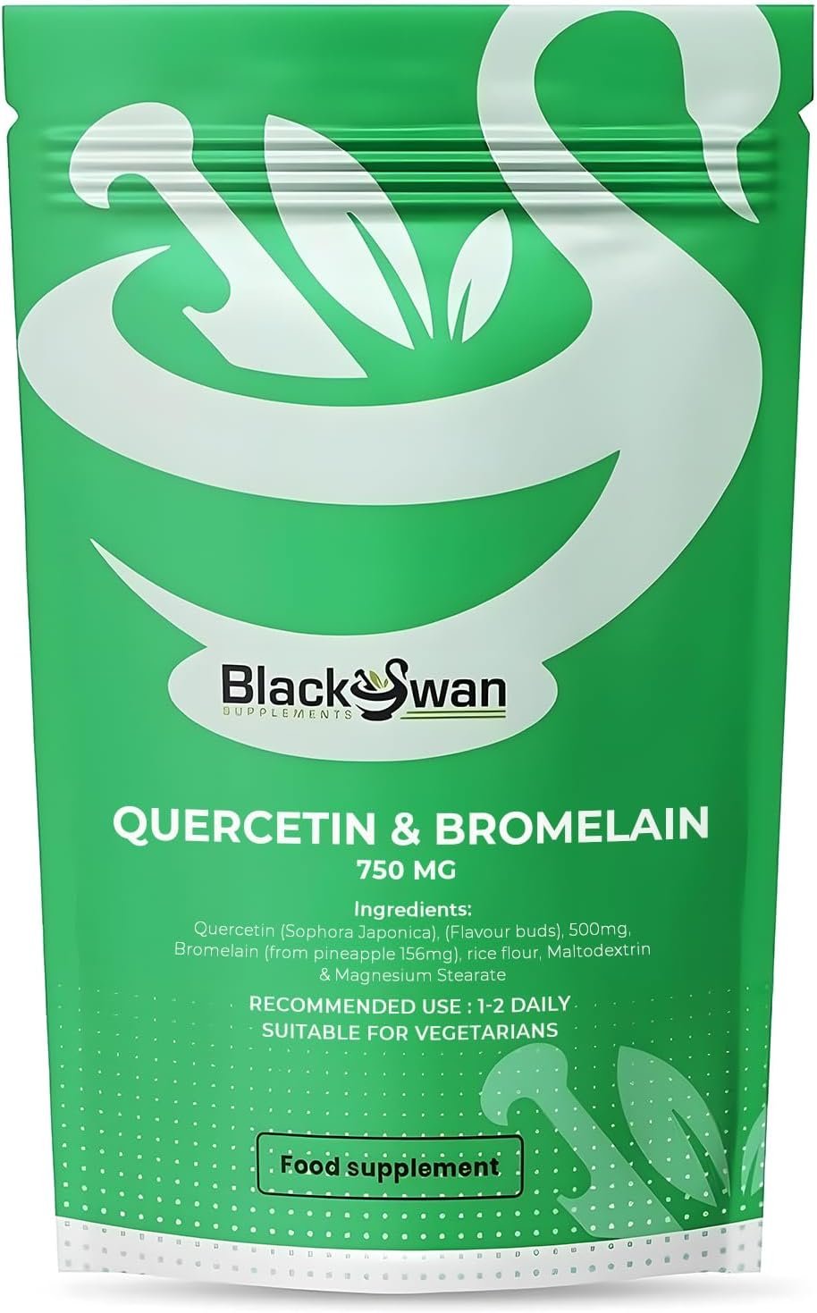 Black Swan Quercetin & Bromelain Capsules – 750mg Antioxidant Formula Anti Inflammatory Respiratory Immune System Joint Health Support Natural Supplement – 30 Caps 1 Month Supply