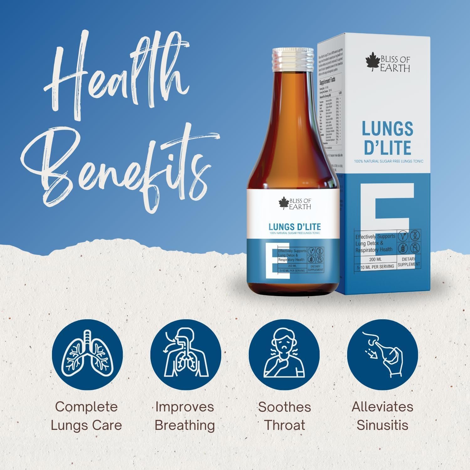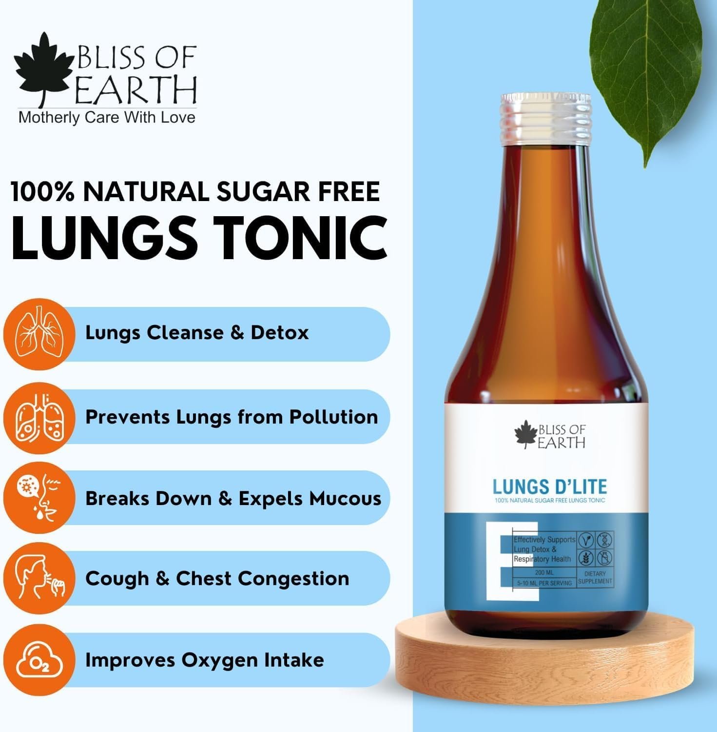 Bliss of Earth Lungs Cleanse for Smokers, Natural Sugar Free Lungs Detox Supplement for Tar & Pollution Detox, Healthy Lungs Cleansing Syrup, 200ml