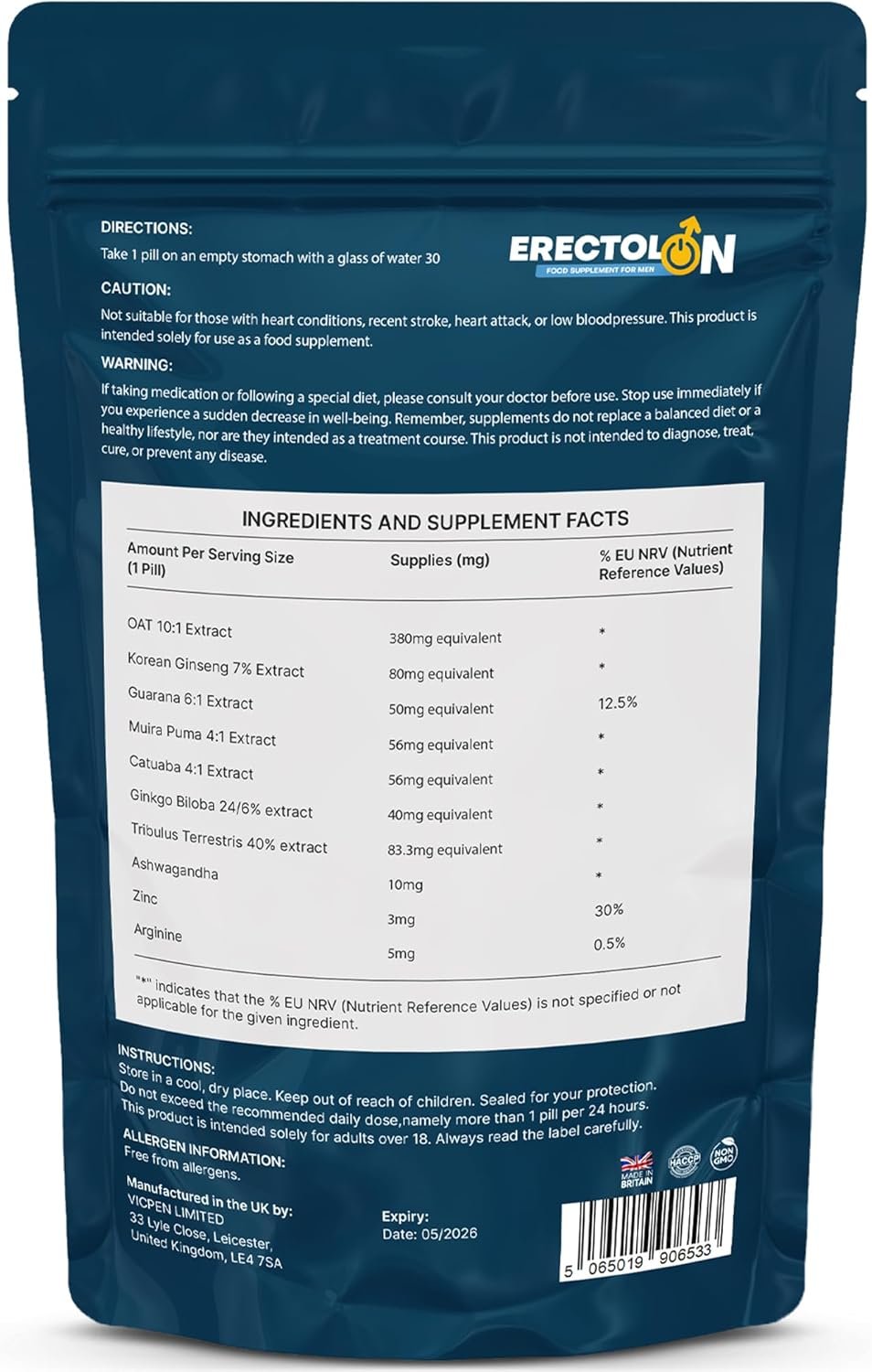 Blue 10 Stamina & Energy Tablets for Men – Fast-Acting Tribulus Terrestris Herbal Supplements for Enhanced Performance & Stamina – Pills for Men UK – Korean Ginseng – Long-Lasting Results