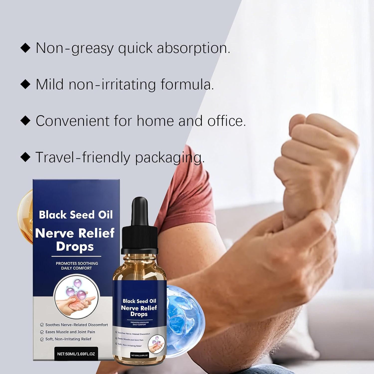 Non-Greasy Refreshing Oil: Joint Relief Drops utilize a lightweight oil blend that penetrates quickly to prevent leftover traces on fabrics, enabling seamless absorption and immediate wear without stickiness, ideal for busy lifestyles or active routines