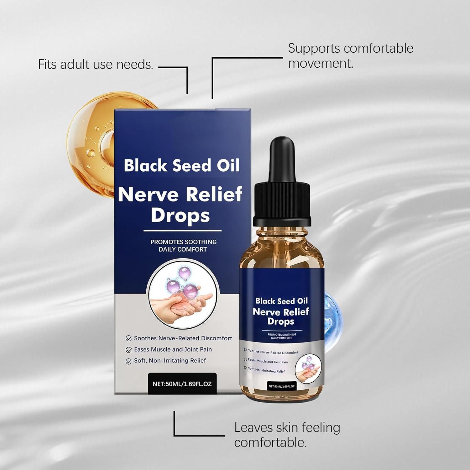 Body Care Drops, Nourishing Liquid, 50ml, Massage Body Oil, Soothing Skin Drops, Lightweight Oil Formula, for Women Men Adults Hand Use Leg Care Foot Relaxation