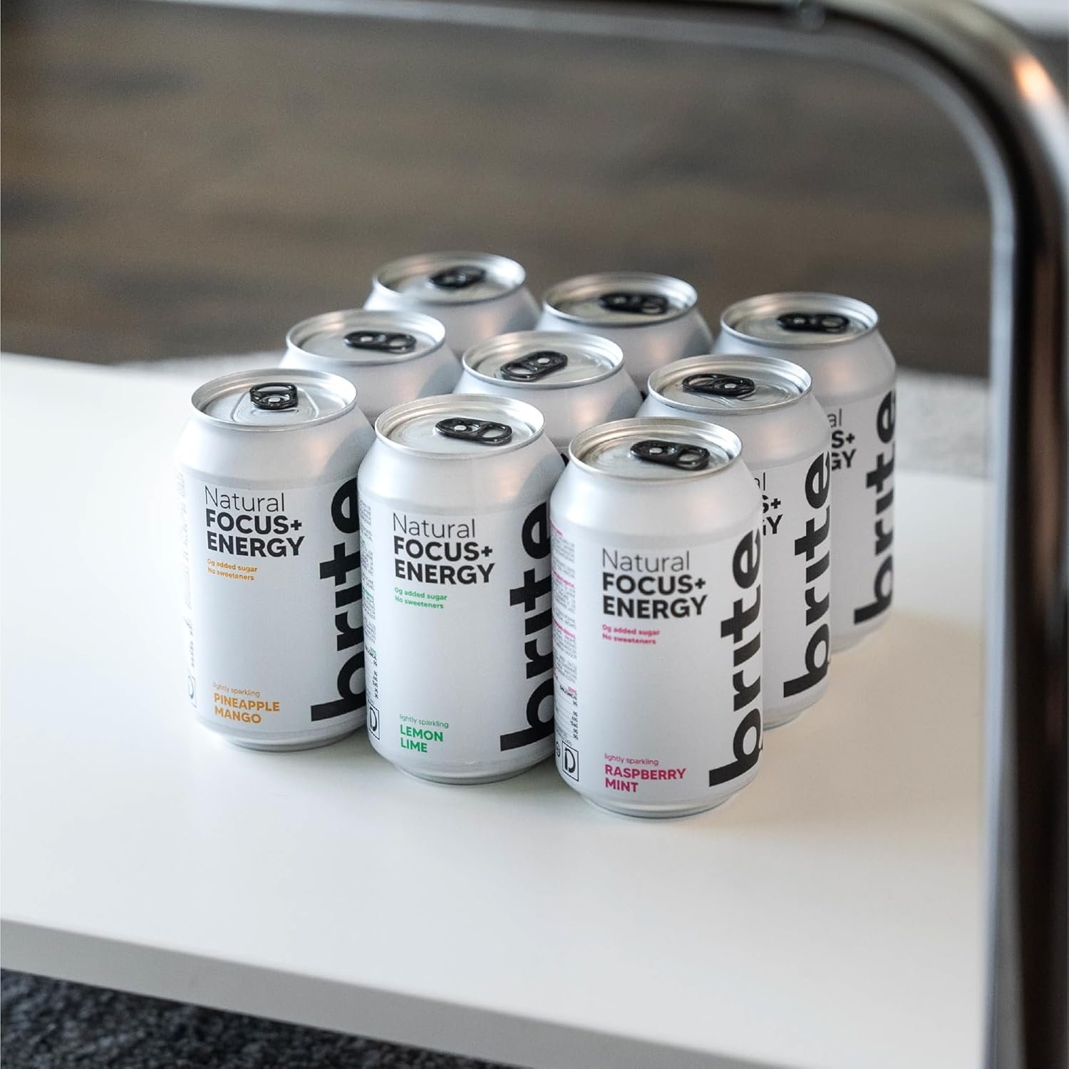 Brite Natural Focus. Energy Drink & Coffee Alternative for Productivity. Plant Based, Backed by Neuroscience. Low Calorie, Vegan, Gluten Free. Lemon Lime 12 x 330 ml.
