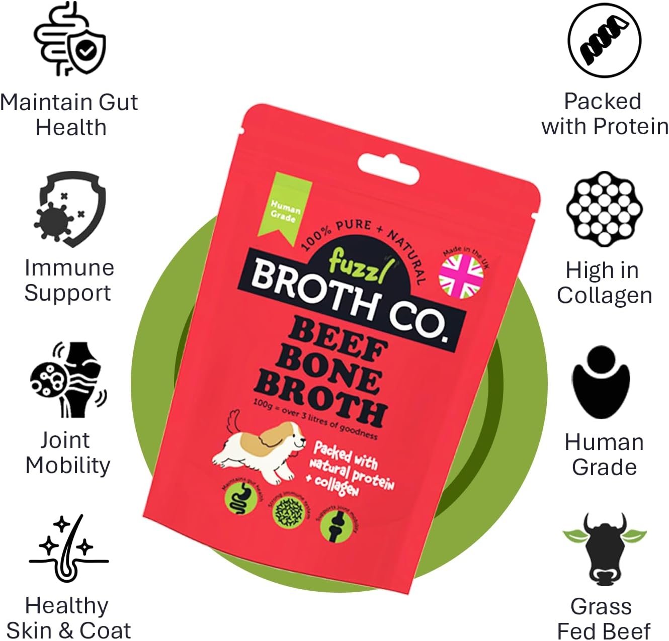 Broth Co. Beef Bone Broth for Dogs 100g – Rich in Collagen, Glucosamine & Chondroitin – Natural Grain-Free Dog Food Topper & Hydrator – Joint, Gut & Immune Health Dog Gravy