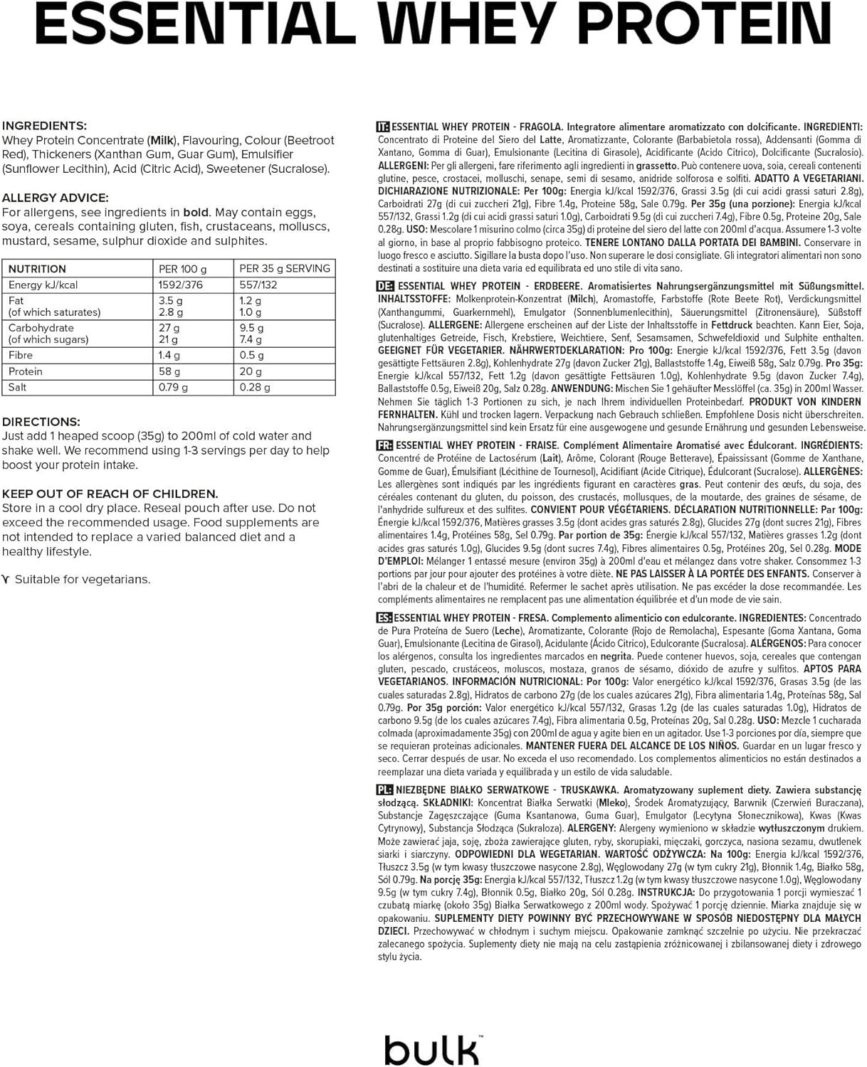 Bulk Essential Whey Protein Powder | Strawberry | 21g Protein per Serving | 9g Essential Amino Acids (EAA) | Supports Muscle Growth | Smooth Mixing | Vegetarian | Natural Flavours | 500g