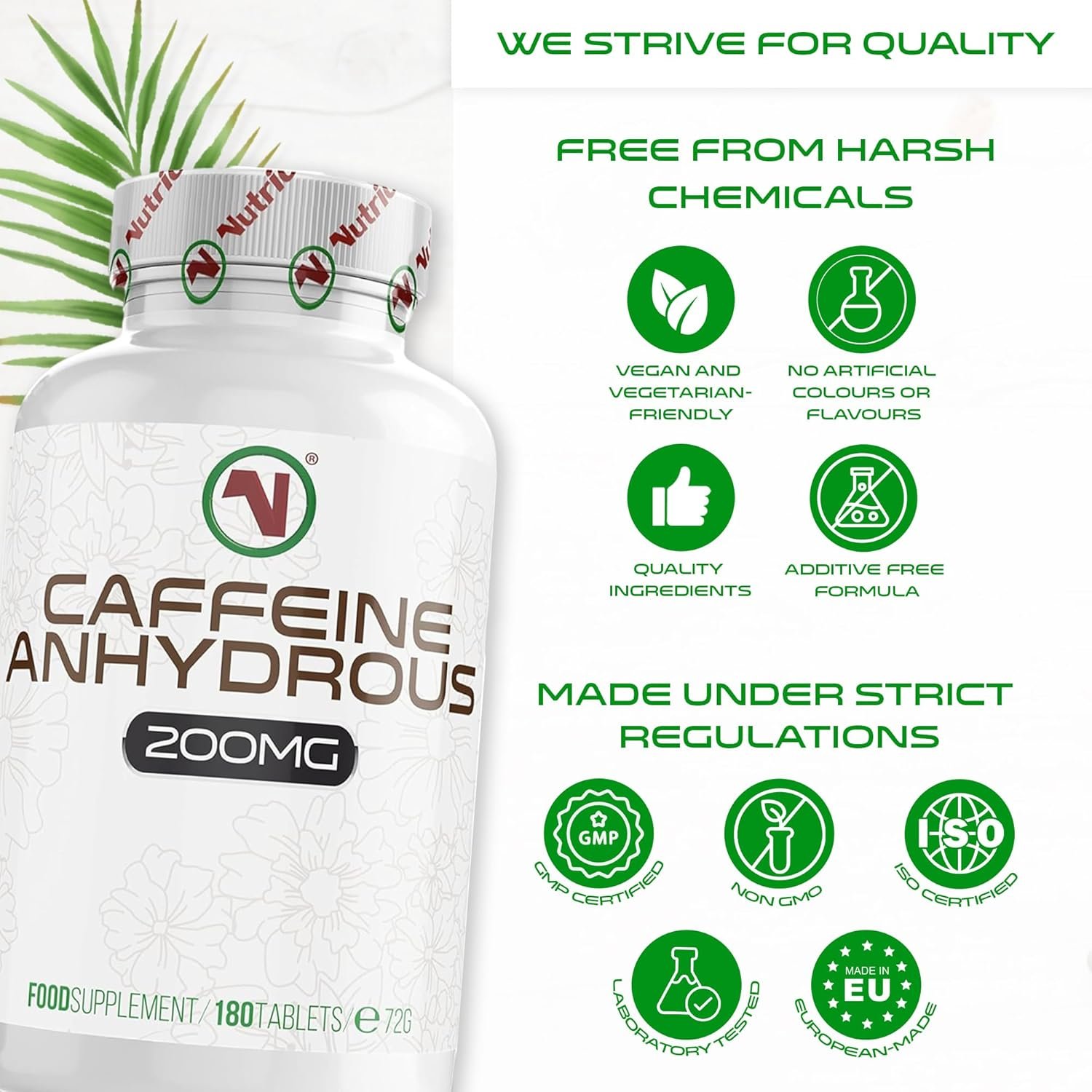 Caffeine Pills 200mg 180 Tablets | Energy Boost & Exercise Support Pre Workout | Improve Focus & Alertness | Vegan EU Made | GMP Approved