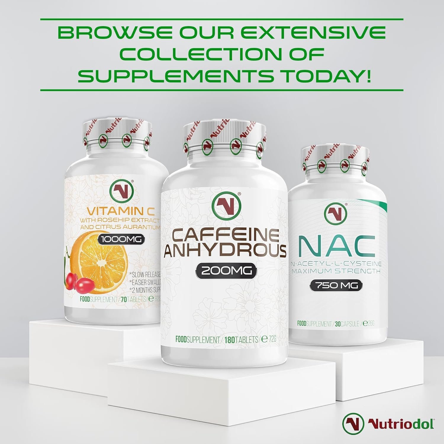 Nutriodol Caffeine tablets contain 200mg of elemental caffeine in an anhydrous form. For healthy adults, up to 300-400 mg/day (2 tablets) is considered safe by the NHS. Pregnant or breastfeeding women do not consume more than 200 mg/day (1 tablet). People with cardiovascular health issues should also consider limiting their caffeine intake.