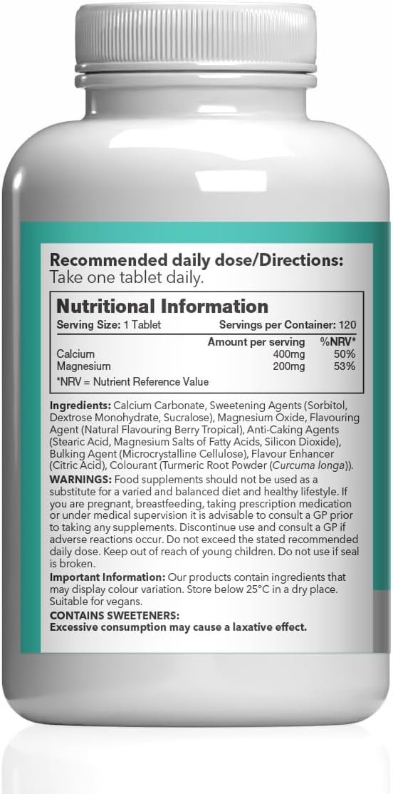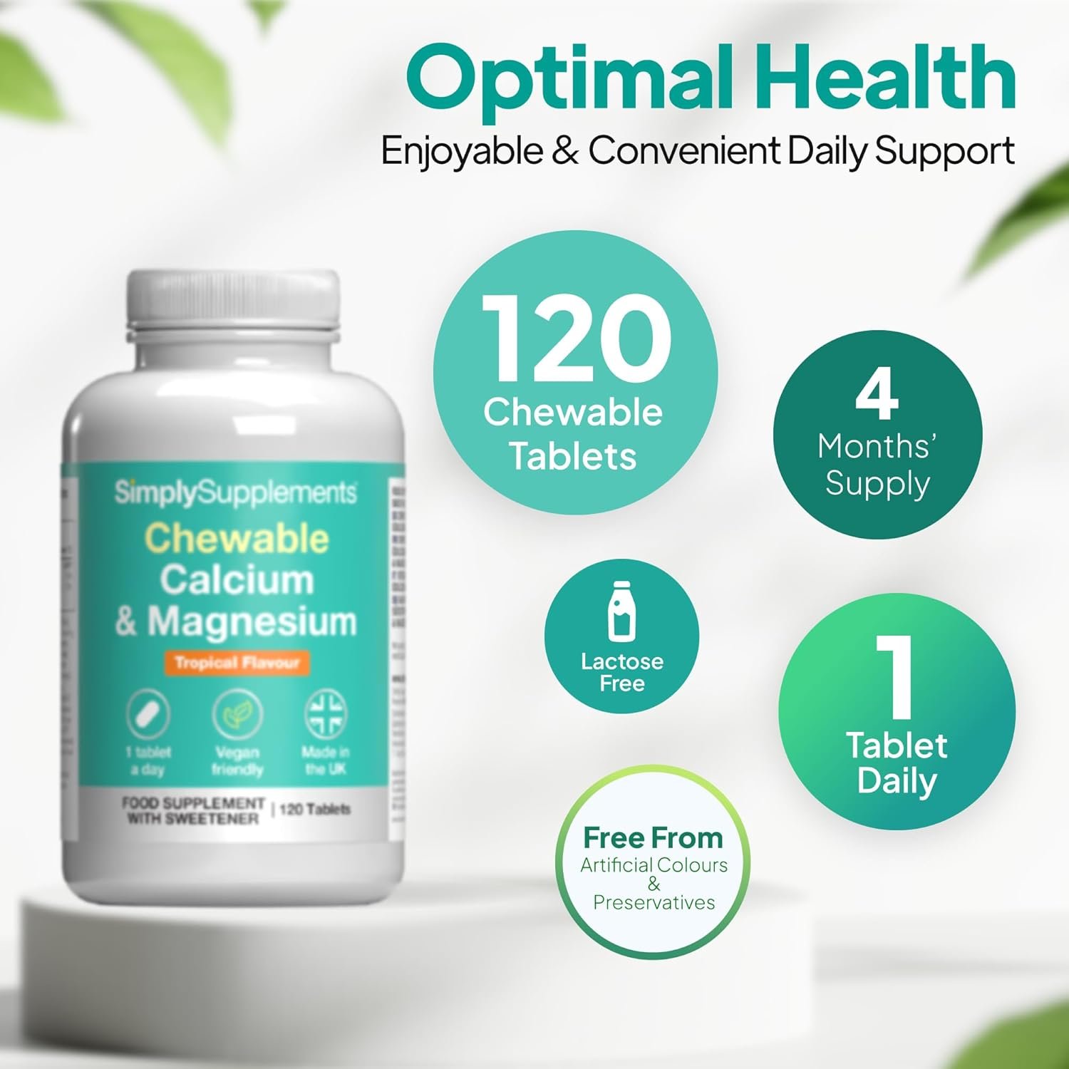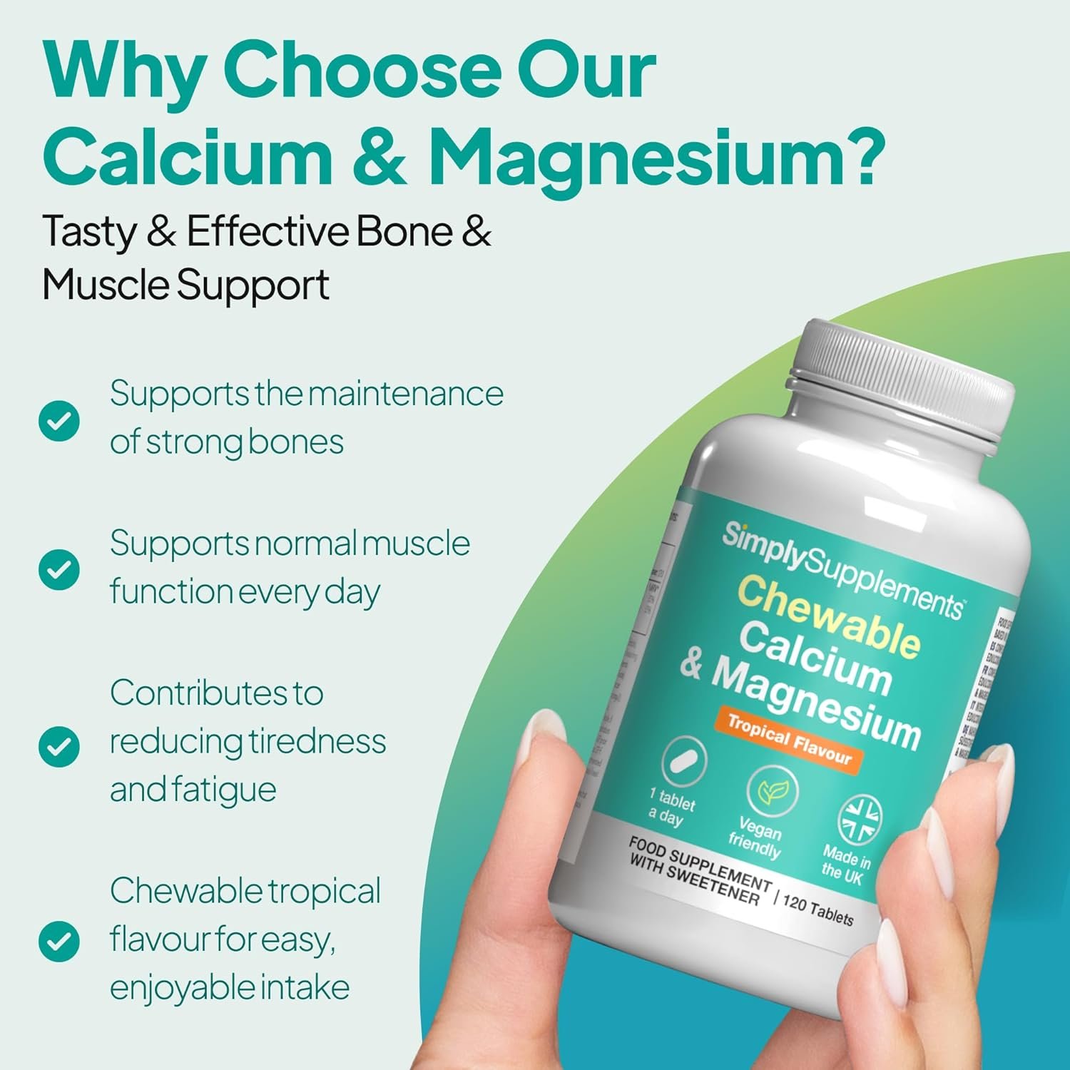 Calcium & Magnesium Chewable Tablets | Supports Bone Strength, Muscle Function & Energy | Tasty Tropical Flavour | Vegan Friendly | 120 Tablets = 4 Months’ Supply | GMP-Certified & UK-Made