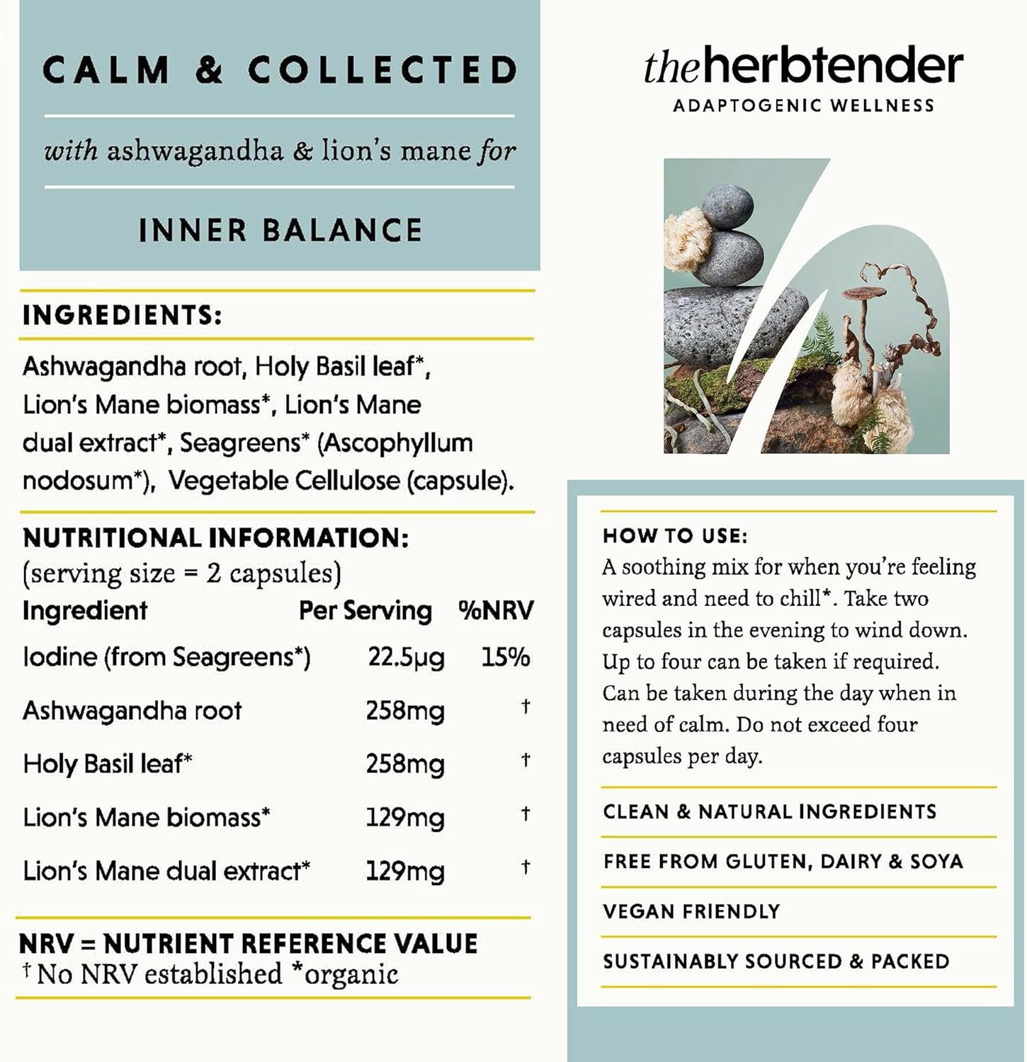 Calm & Collected – 60 Capsules – Ashwagandha Capsules with Lion’s Mane & Holy Basil – Natural Stress & Anxiety Support – Calming Blend for Relaxation & Inner Balance