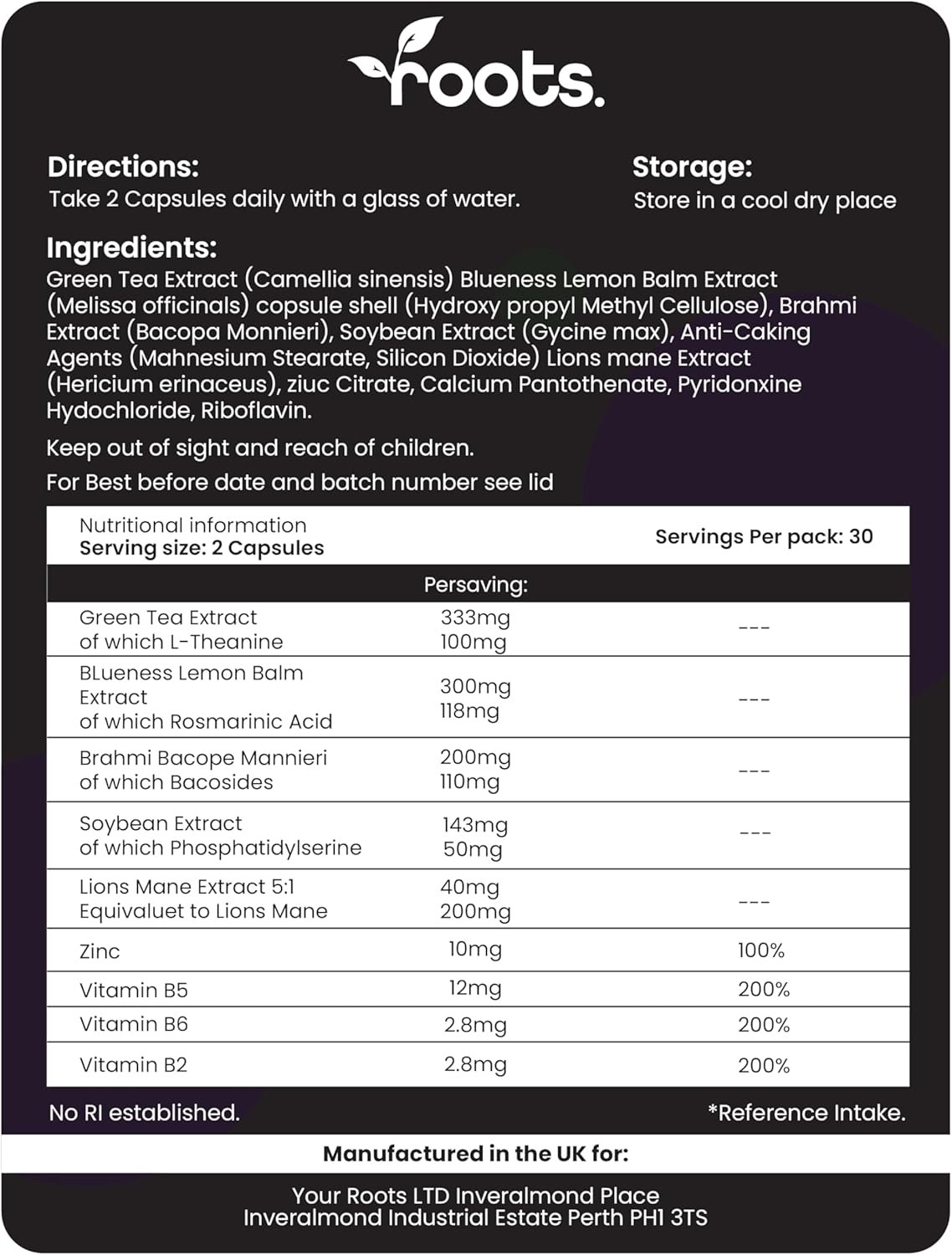 QUALITY PLANT-BASED INGREDIENTS: Made with Bluenesse, L-Theanine, and Lion’s Mane Mushroom. Includes essential vitamins B6 and Zinc. This blend is crafted for general cognitive support.