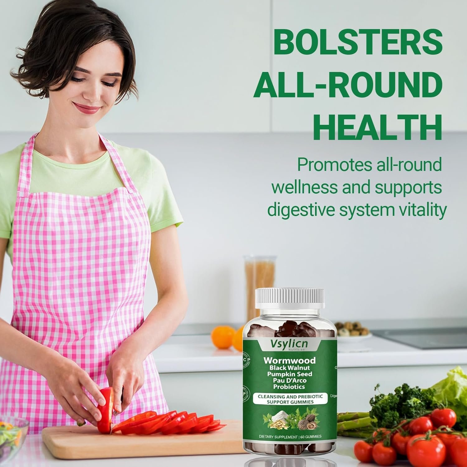 Herbal Powerhouse Gummies for Gut Cleanse & Candida Support – Experience a synergistic blend of key botanicals including Wormwood, Black Walnut, Pau D’Arco, and Pumpkin Seed, designed to support a healthy gut environment and promote microbial balance. Enhanced with Ginger and probiotics, this comprehensive formula is ideal for those seeking daily digestive wellness and natural candida support in a delicious Green Apple Gummy