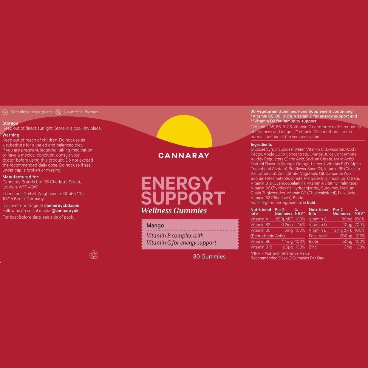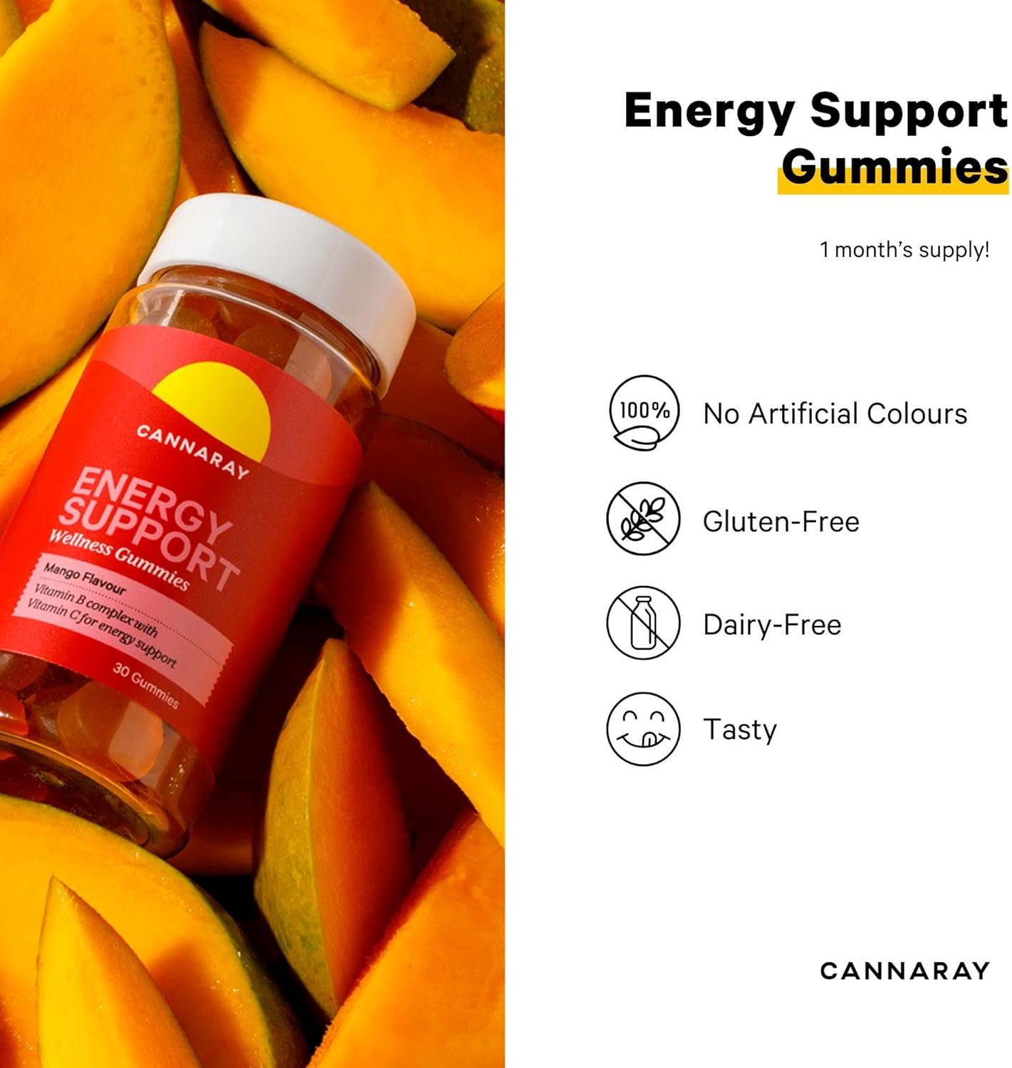 Cannaray Energy Support Gummies – 30 Count | Mango Flavour | with Vitamin B5, B6, B12 & Vitamin C for Energy | Vitamin D3 for Immune Support