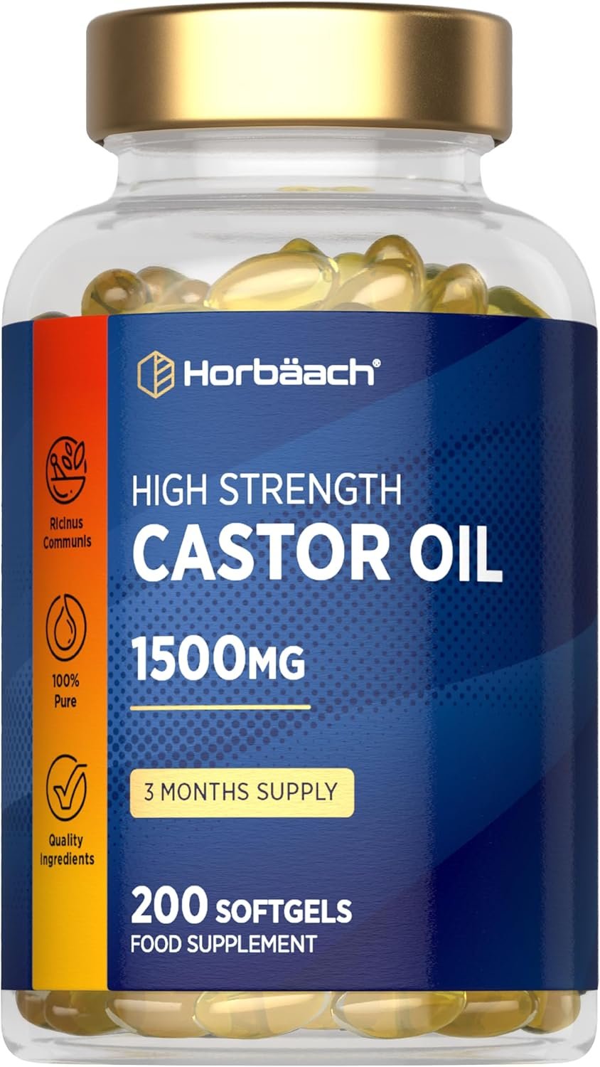 HORBAACH CASTOR OIL SUPPLEMENT: Each daily serving provides 1500mg Castor Oil in easy-to-swallow softgels per daily serving.