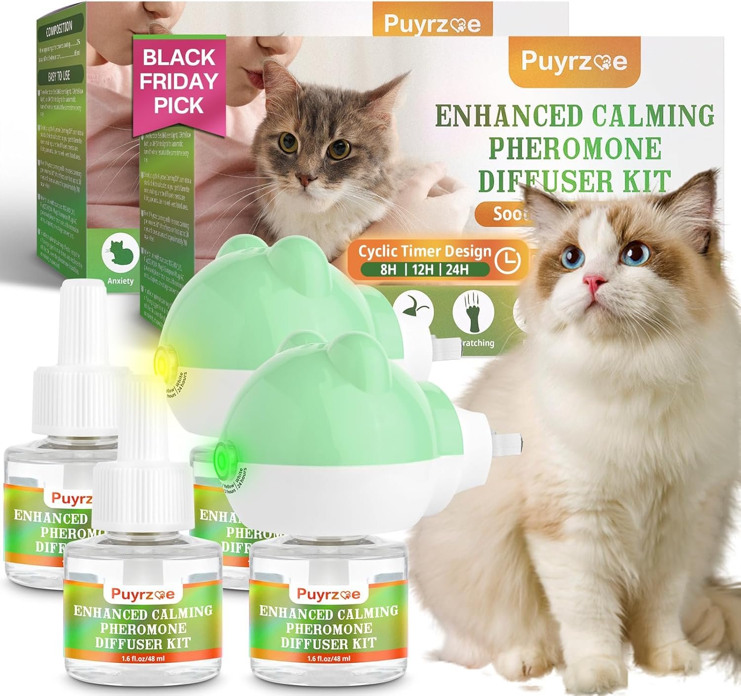 FRIENDLY FOR CATS AND FAMILY: The Puyrzoe cat pheromone diffuser features an odorless, non-toxic formula made without artificial fragrances—perfect for households with pets and kids. Inspired by natural feline appeasing pheromones, it gently signals comfort and security to your cat, making it a great choice for cats of all ages.