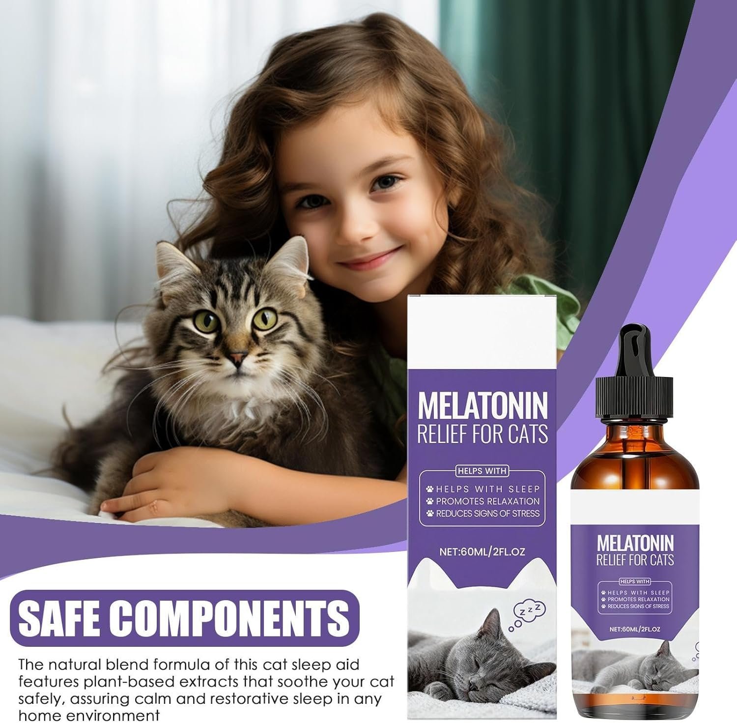Sleep Cycle Boost: Assisting cats’ internal clocks, this sleep aid reduces stress responses and encourages deeper, more rejuvenating rest. By addressing restlessness caused by external disruptions, it provides comfort during challenging times such as houseguests or unfamiliar surroundings