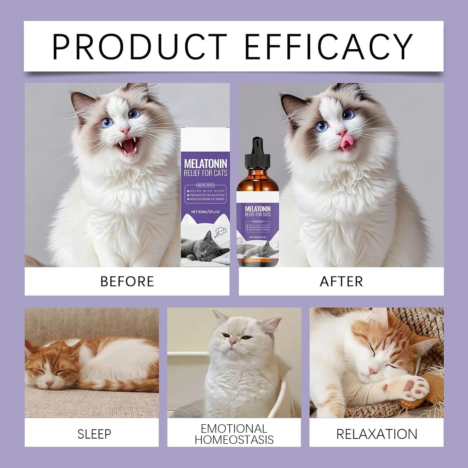 Sleep Aid: 60ML natural relief solution designed to help cats, kittens, and puppies relax and achieve restful sleep, reducing stress, tension, and for a calmer, healthier pet experience at home, during travel, or at night