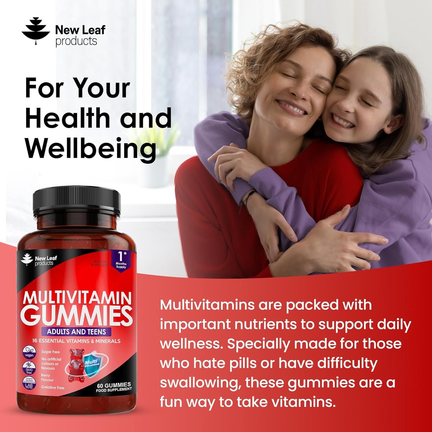 CHEWABLE VEGAN MULTIVITAMINS – New Leaf Sugar Free Multivitamins are packed with important nutrients to support daily wellness. Specially made for those who hate pills or have difficulty swallowing, these gummies are a fun way to take vitamins. (suitable from ages 12+) looking for a great supplement to ensure they’re getting all vitamins and nutrients they need.