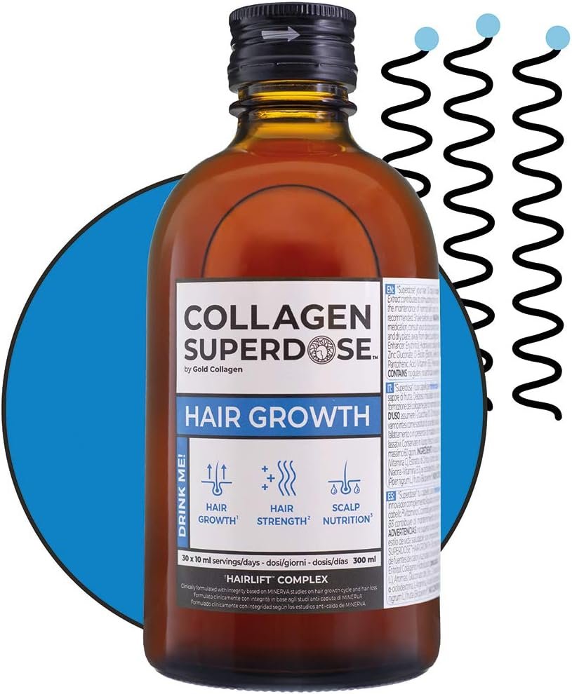 COLLAGEN SUPERDOSE BY GOLD COLLAGEN Hair Growth – Biotin Hair Growth Marine Collagen Supplements for Women & Men with Vitamin C, Hyaluronic Acid and Natural Keratin Hair Treatment, Skin, Nails, 300 ml