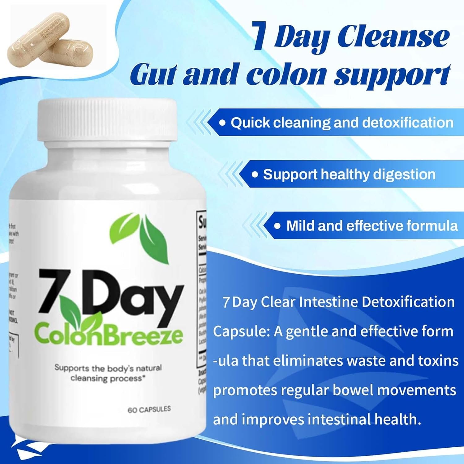 🍏【With 11 Natural Ingredients】7 Day Colon Breeze Each capsule of the supplement contains a blend of potent natural ingredients renowned for their cleansing properties, such as senna leaf, cascara sagrada, psyllium husk, and more.