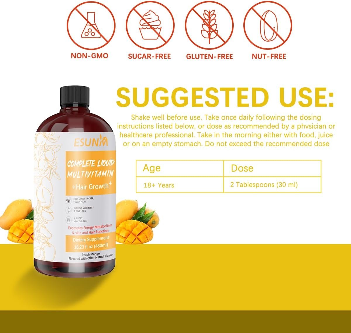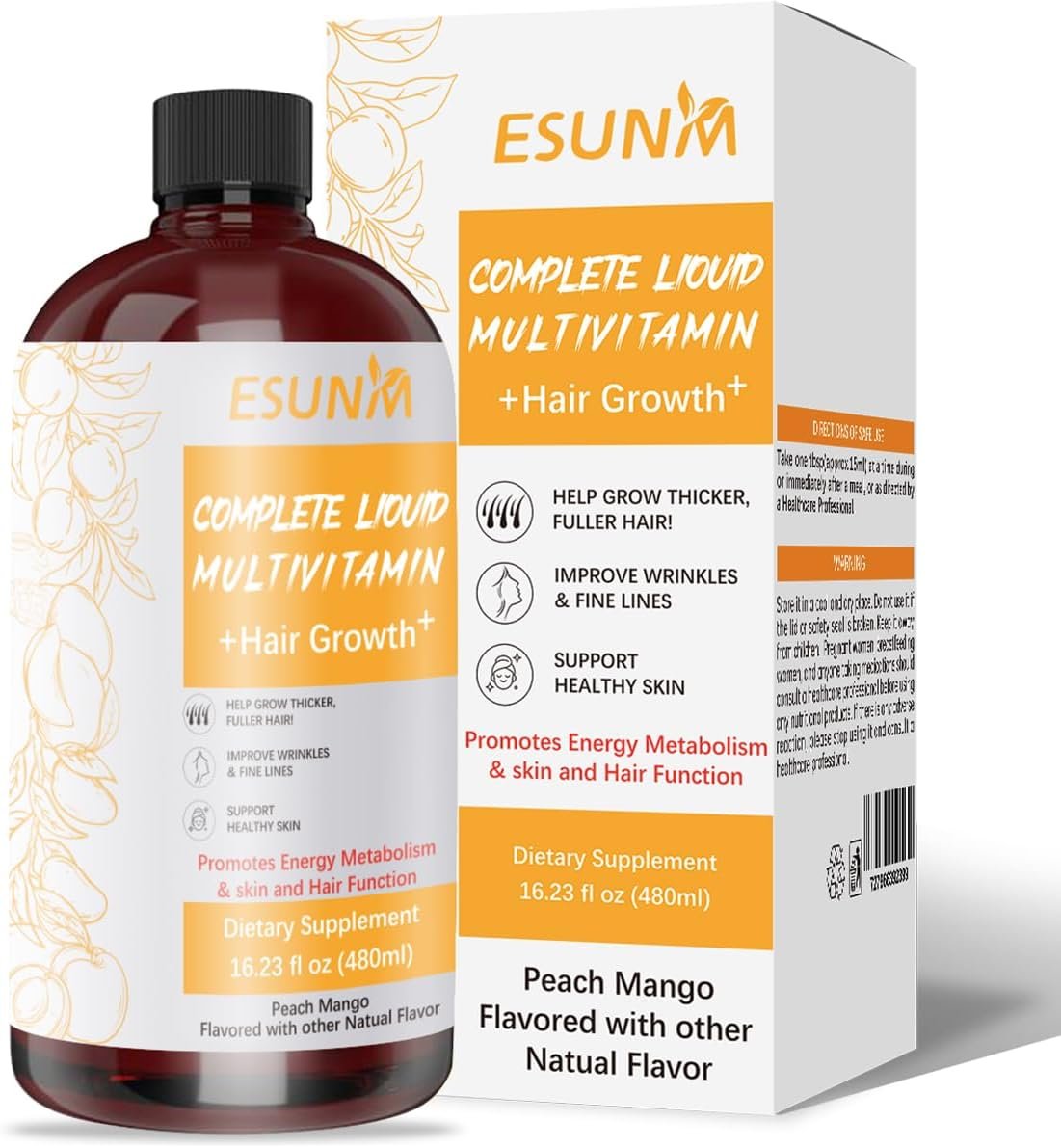Complete Liquid Multivitamin + Hair Growth, Promotes Energy Metabolism& Skin and Hair Function| Vitamin C D | B Vitamins | Help to Thicker Hair, Wrinkles, Fine Lines, Skin Care