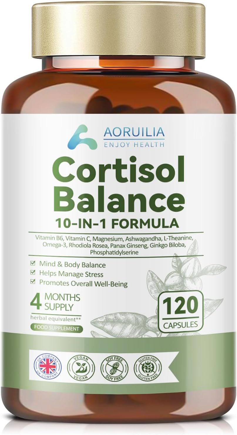 Cortisol Balance, 10 in 1 Cortisol Supplement with 4000mg High Strength Ashwagandha (from a 200mg 20 :1 Extract), Magnesium Blend, L-Theanine, Omega-3 Fatty Acids for Mind & Body Balance, 120 Capsules