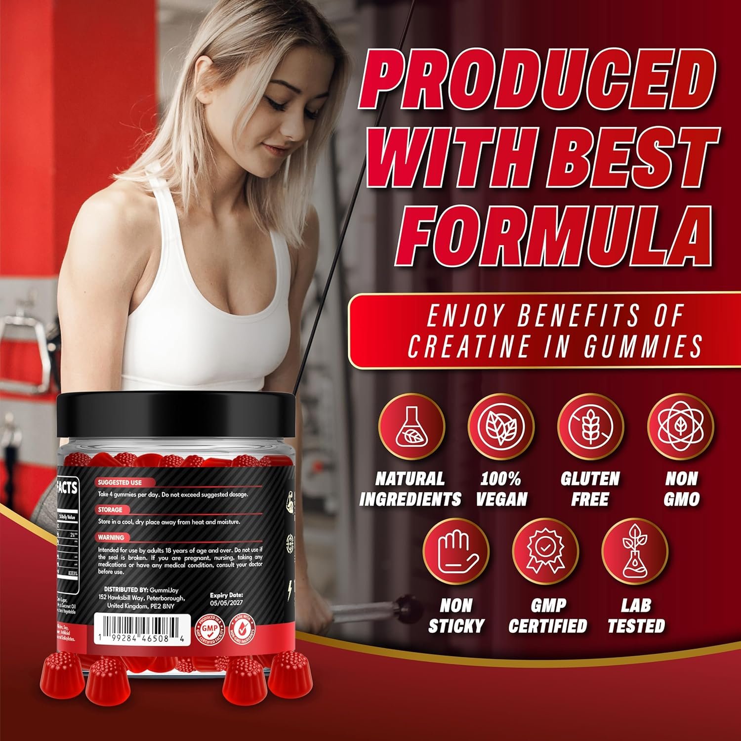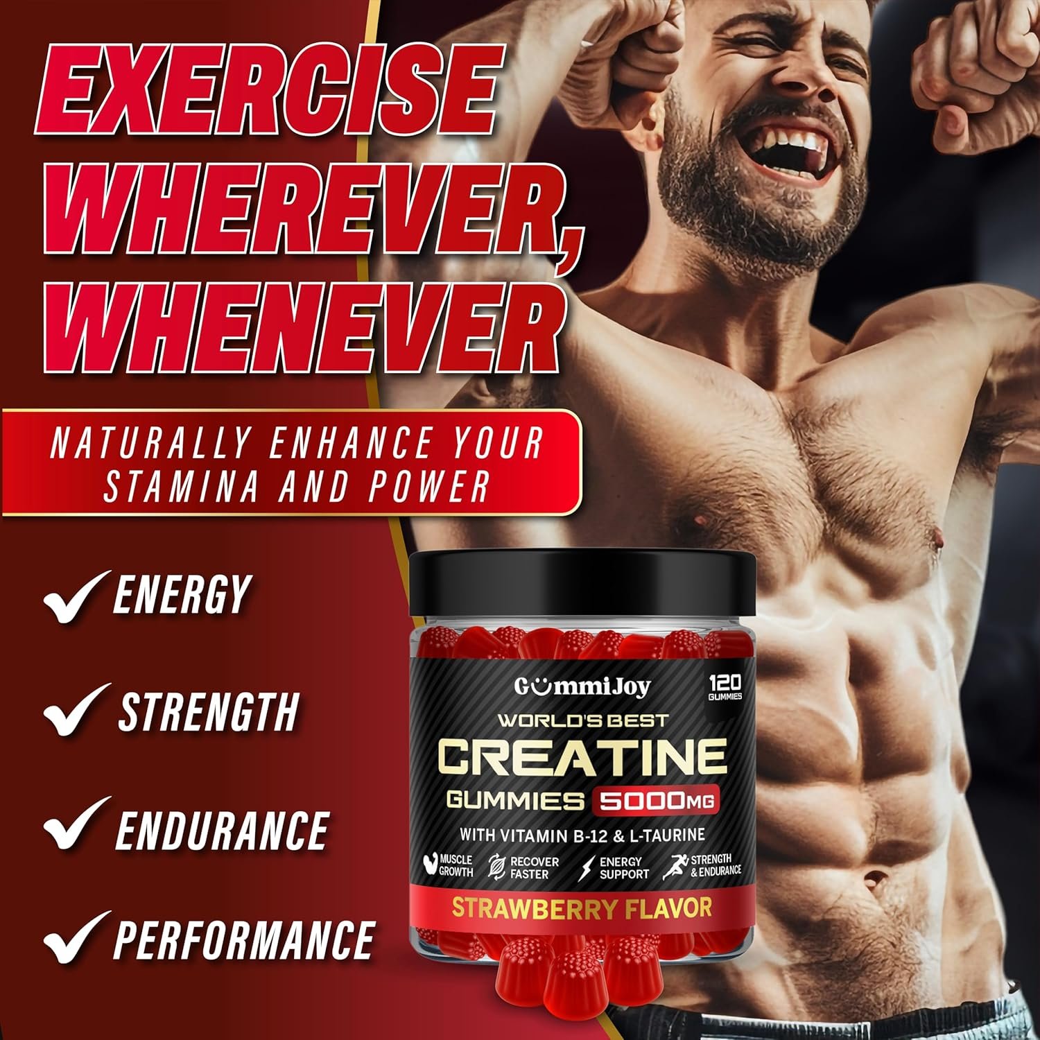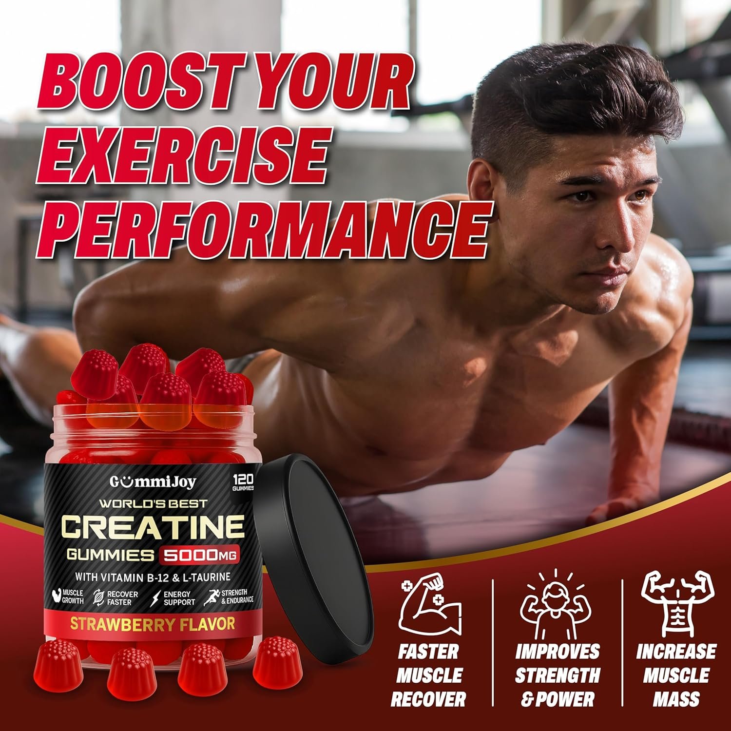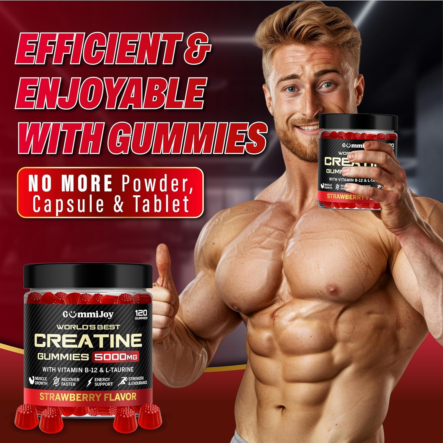 Innovative Performance Formula GummiJoy Creatine Gummies deliver a 5 000 mg daily dose of highly bioavailable Creatine Monohydrate in just four tasty chews, designed to boost strength, power and overall workout performance.