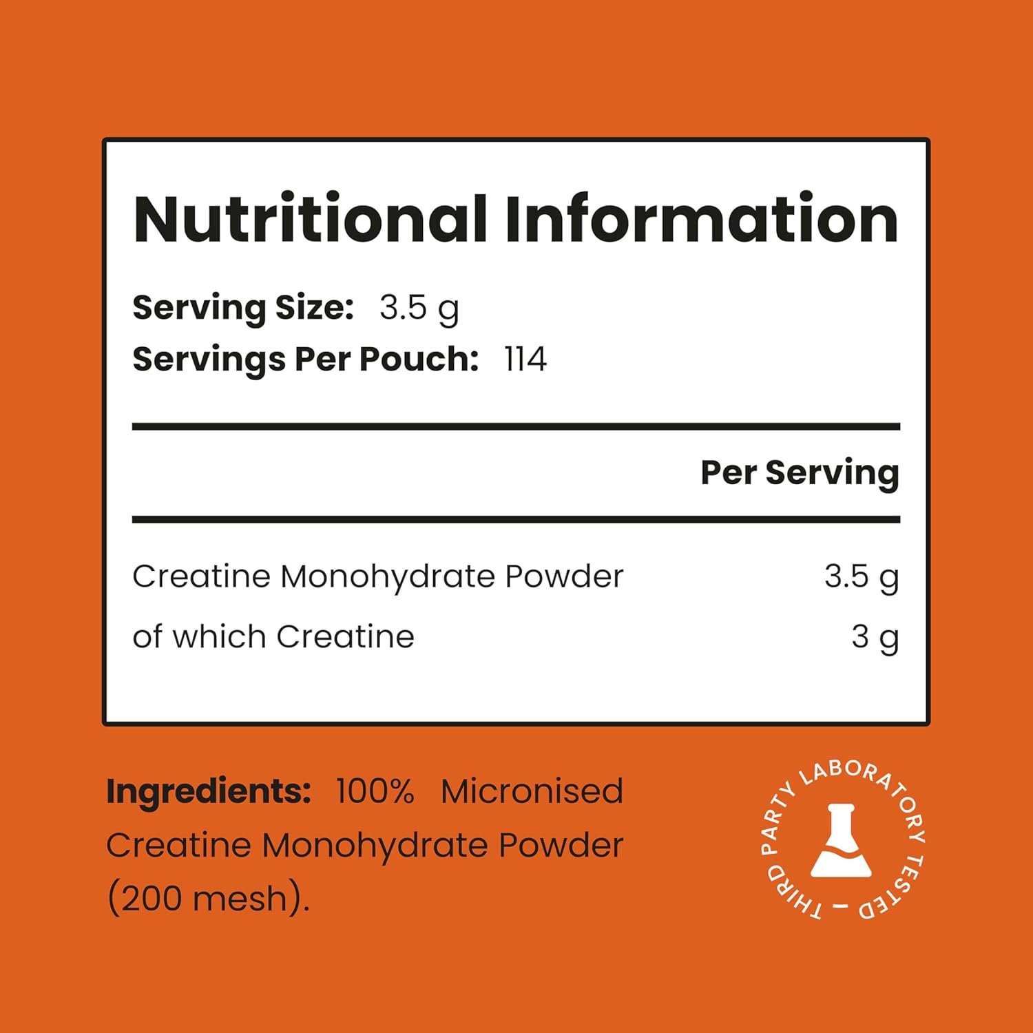 AMAZING VALUE 400g POUCH WITH 114 SERVINGS – Each 400g pouch provides a 114 days supply of pure Creatine Monohydrate, giving you a 3.5g serving in every scoop. Combine premium quality and unbeatable value to power your workouts for months with a single bag.