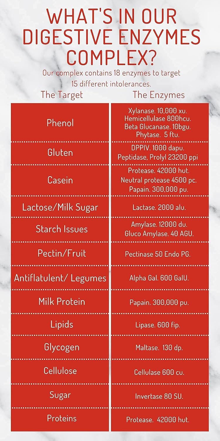 ✔️IMPROVES DIGESTION. Digestive enzymes are proteins that help the body digest food by breaking it down. Although digestive enzymes are naturally produced in the body, some factors can slow down enzyme production – which may lead to food intolerances. Supplementing with digestive enzymes may reduce symptoms of food intolerance-related issues.