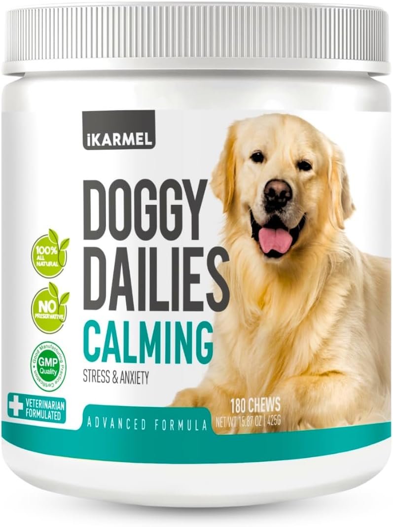 👉NOT A MIRACLE CURE- Although to some it might seem that way. Although we have put our best paw forward in the creation of our calming chew Unfortunately Doggy Dailies Calming treats are unable to train your dog if it has underlining behaviour issues. Please seek a dog behaviour expert. iKarmel Calming treats has helped so many of our furry friends and that is what we have set out to do. Please allow 4-6 weeks to see the full results
