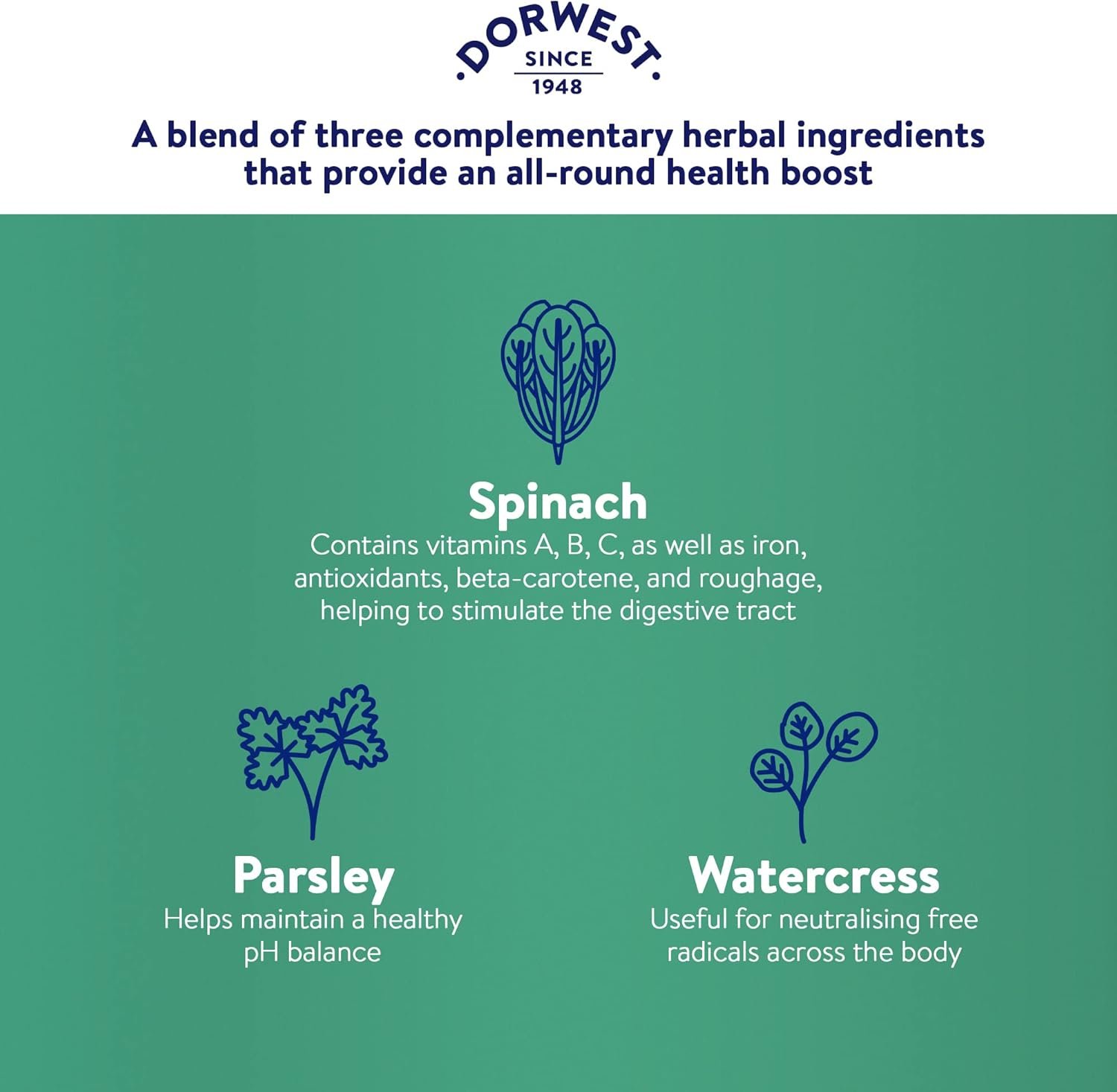 Three herbs renowned for their ‘super-green’ health properties work together to provide effective all-round health: