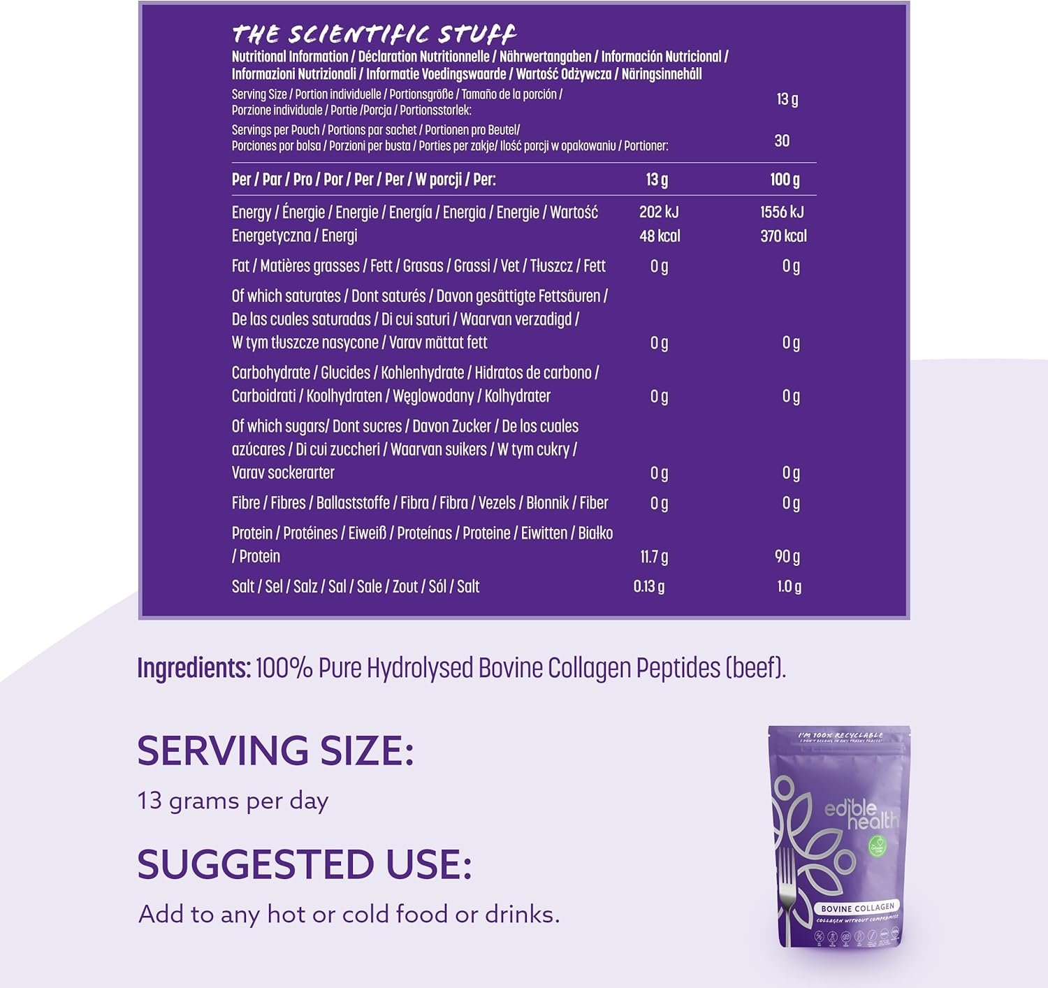 Edible Health Premium Collagen Powder 400g – Types 1 & 3 Protein Peptides, 18 Amino Acids, Hydrolysed Bovine Collagen, Paleo Keto Kosher Halal
