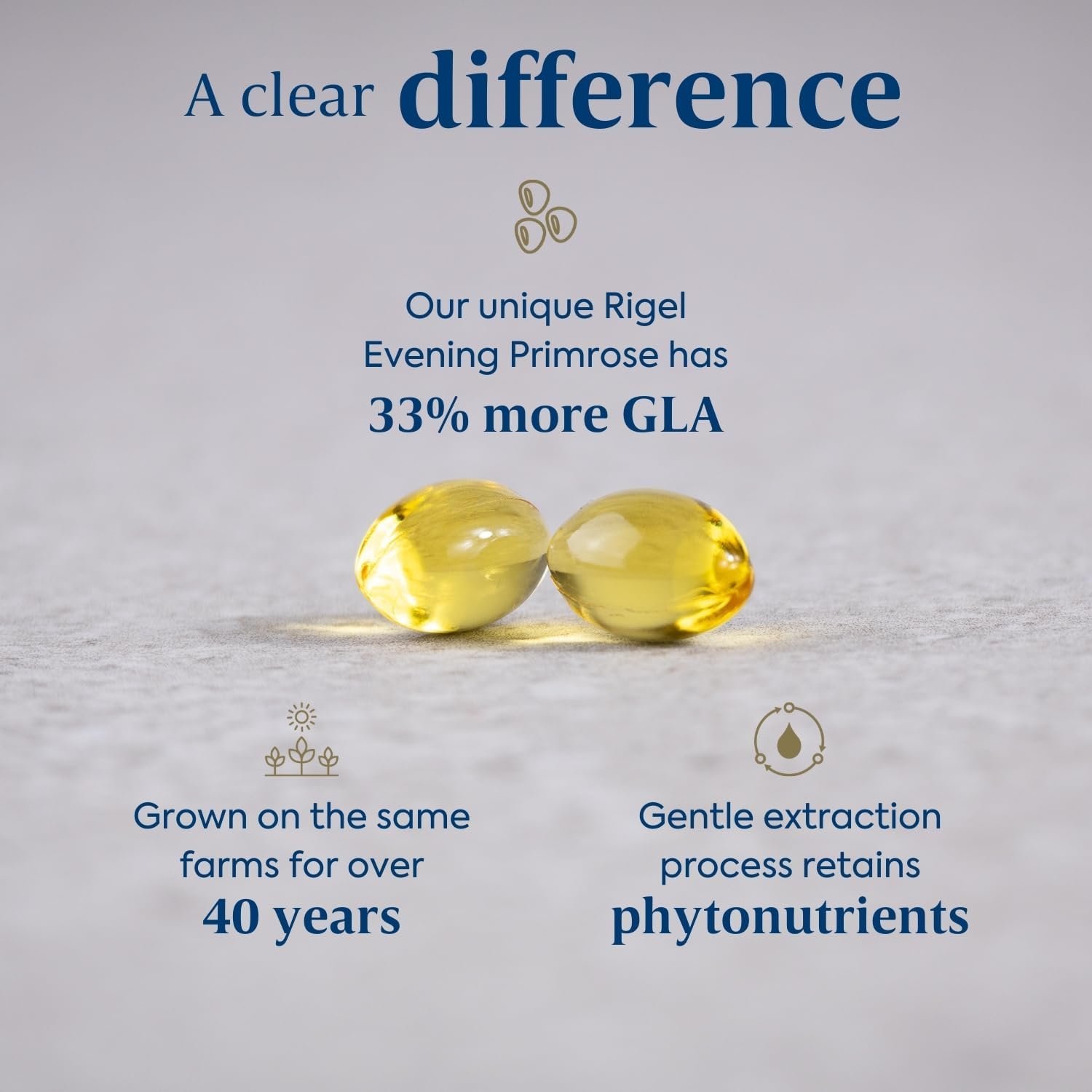 Concentrated and effective – Efamol Evening Primrose Oil contains New Zealand farmed Rigel Evening Primrose oil, providing 1115mg of GLA per 2 x 500mg capsule – higher than other high street brands.