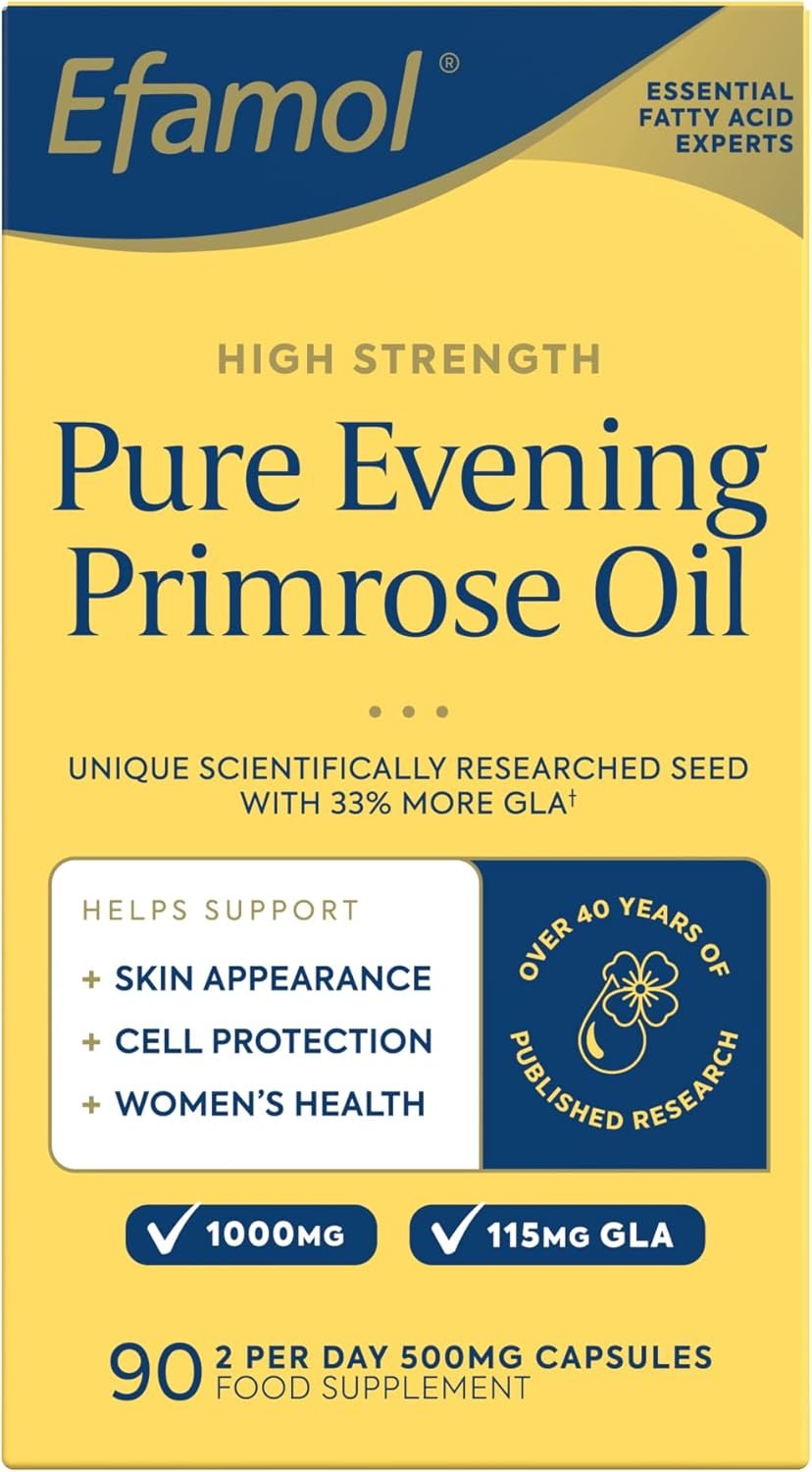 Efamol Evening Primrose Oil Capsules 500mg | High Strength Pure Evening Primrose Oil | Vitamin E | Menopause Vitamins | Helps Support Smooth Skin | 90 Capsules