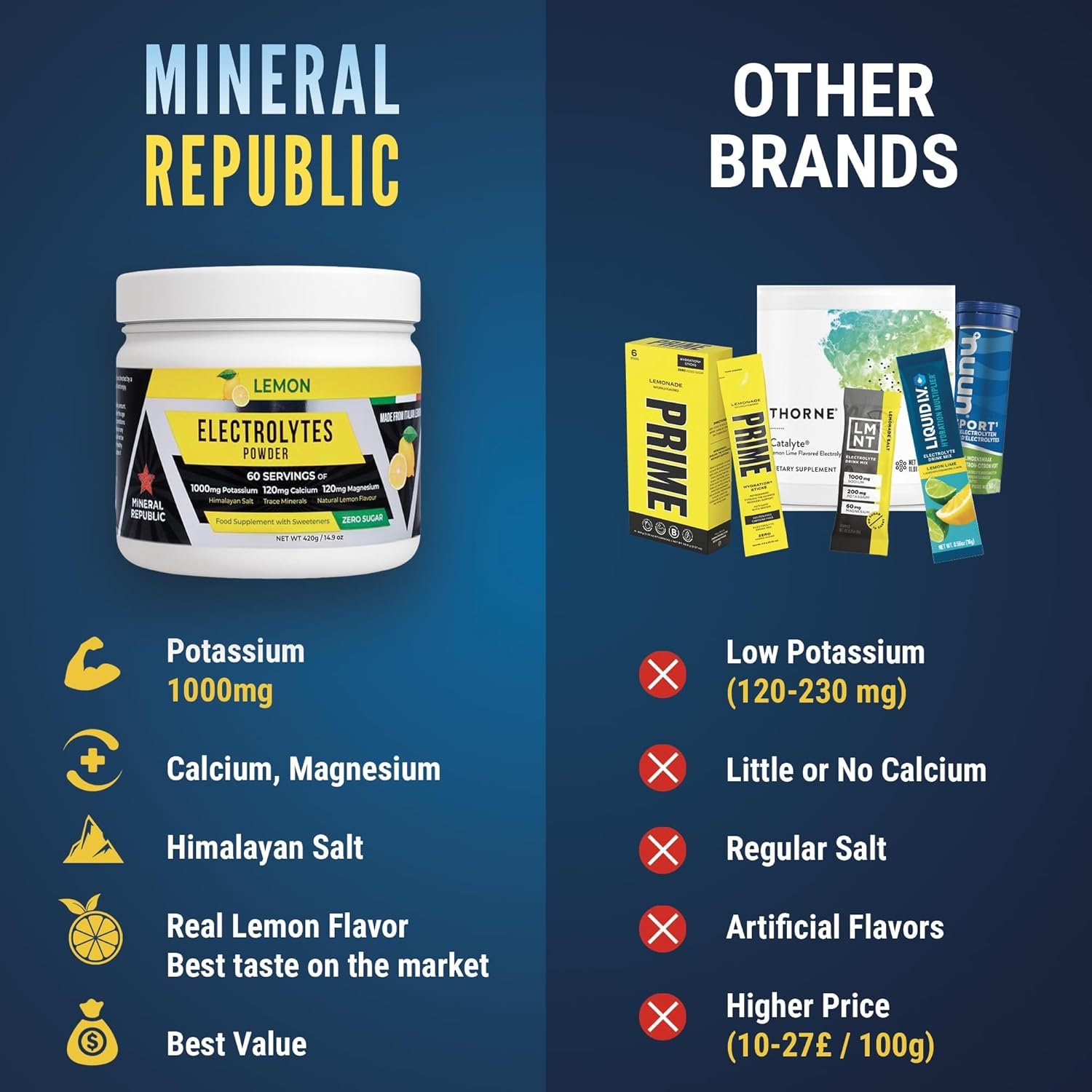 This is the core electrolyte in the blend and one of the highest-potency potassium doses available in the UK.It supports nerve function, muscle control, and helps maintain normal fluid balance — crucial for athletes, fasting, or keto diets.