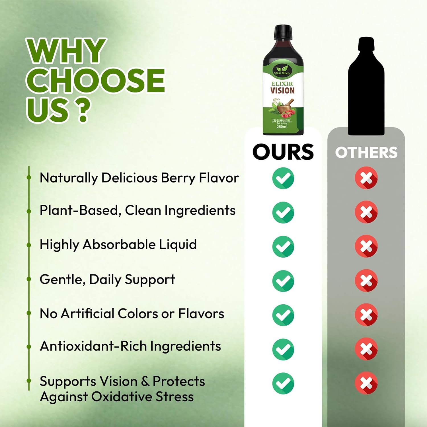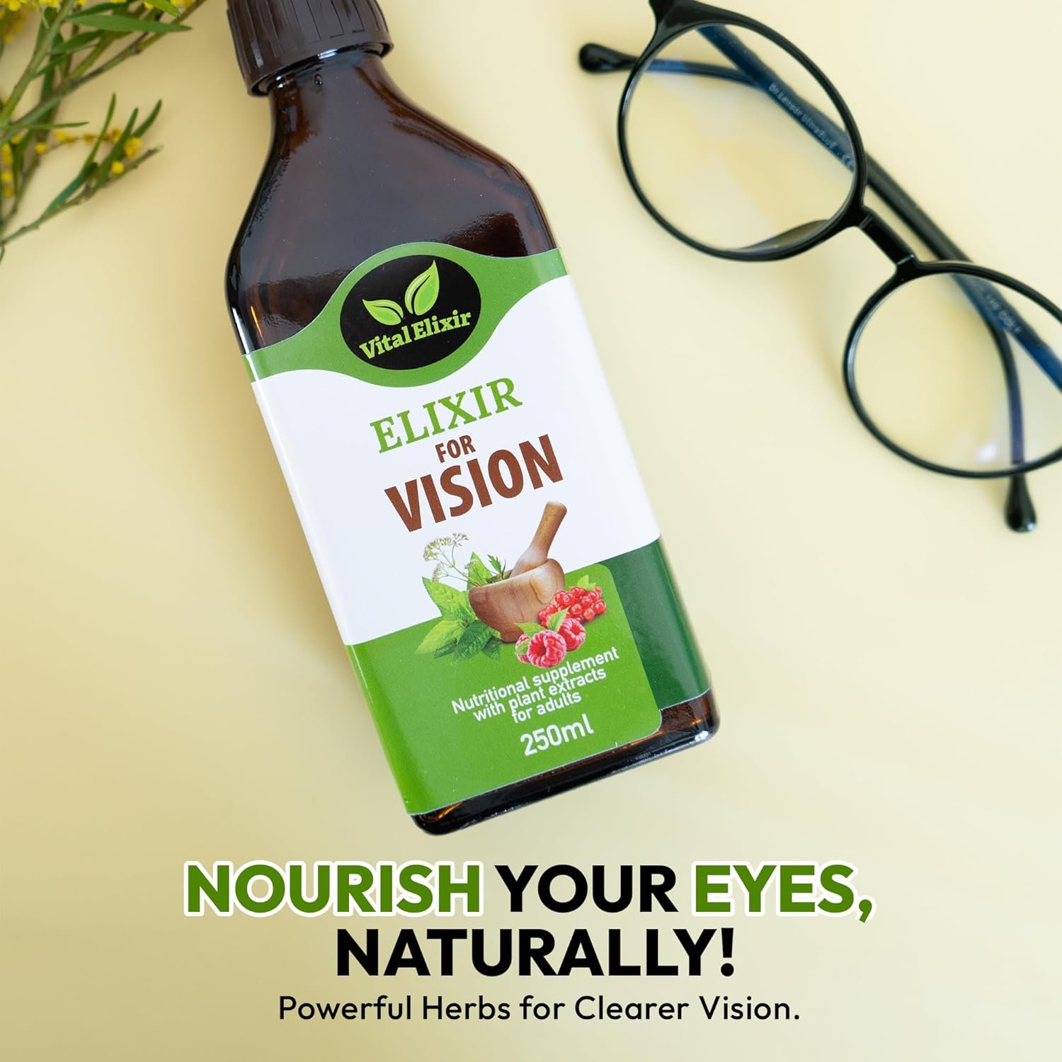 Elixir Vision, Nutritional Food Supplement with Plant Extracts for Adults – Herbal Liquid Formula with Eyebright & Marigold – 250ml – Vegan & Gluten-Free