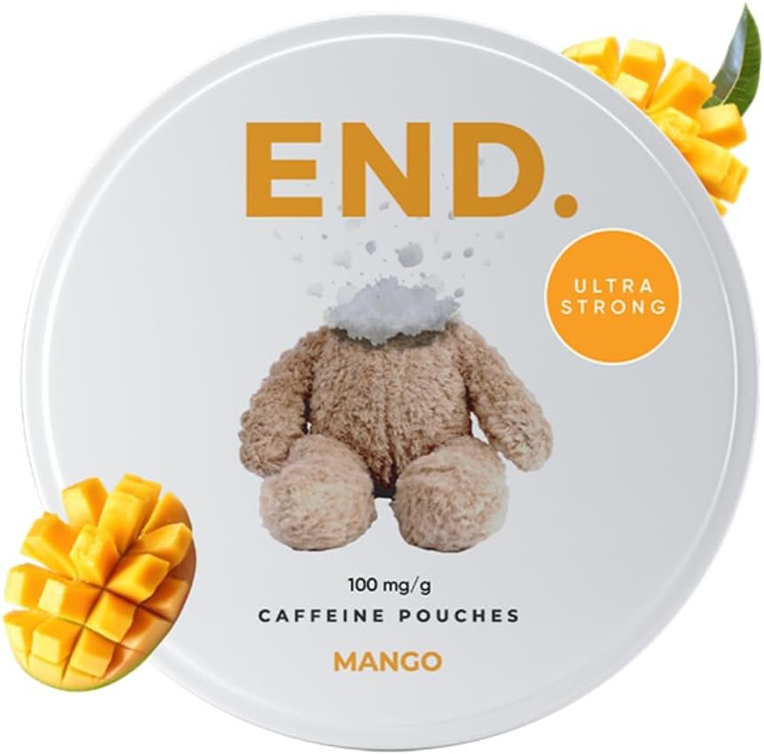 END. Mango Caffeine Pouches | Natural Energy Boost, On-The-Move Energy, Zero Sugar, 15 Pouches Per Can, Perfect for Sports, Fitness, Gaming & Work