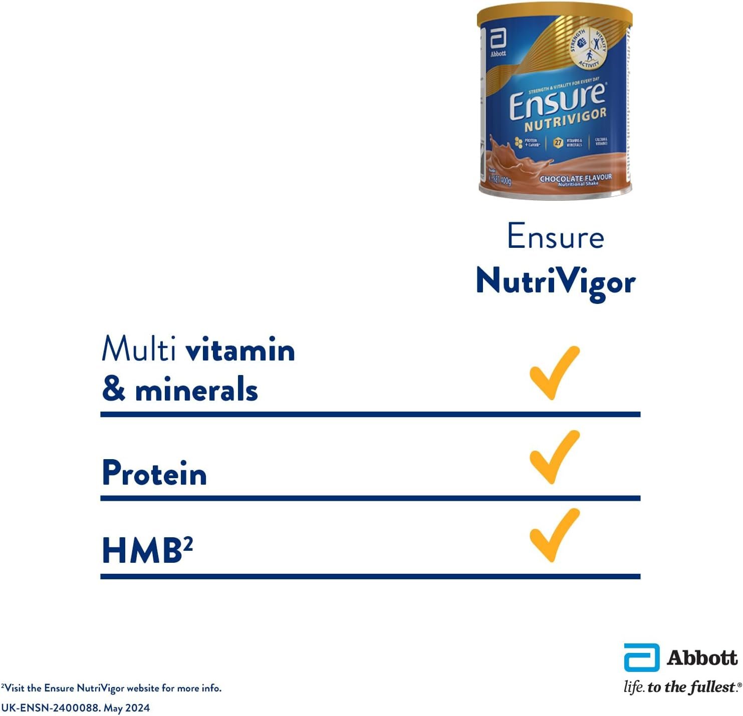 Ensure NutriVigor Nutritional Shake – Chocolate Flavour – 400g – Food Supplement with Protein, HMB & 27 Vitamins & Minerals – Supports Strength, Energy & Immunity – With Vitamin D, C & B
