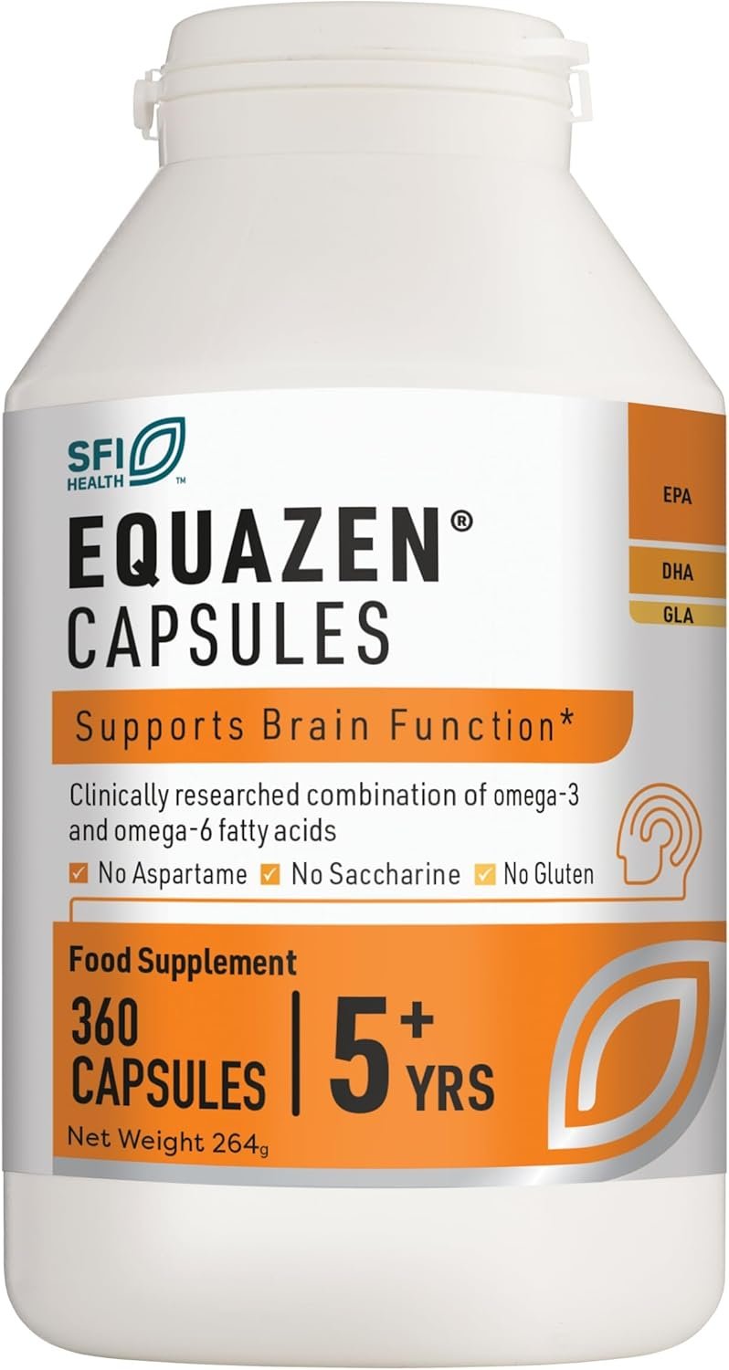 Support your family’s cognitive and overall health with EQUAZEN Family Capsules, a specially formulated blend of Omega-3 (EPA & DHA) and Omega-6 (GLA) essential fatty acids. Backed by clinical research, this supplement is designed to help maintain normal brain function, focus and vision. Suitable for children aged 5+ and adults, it provides a convenient way to ensure your family gets the right balance of essential fatty acids. With 360 capsules per pack, EQUAZEN delivers long-lasting, high-quality nutritional support trusted by families and healthcare professionals worldwide.