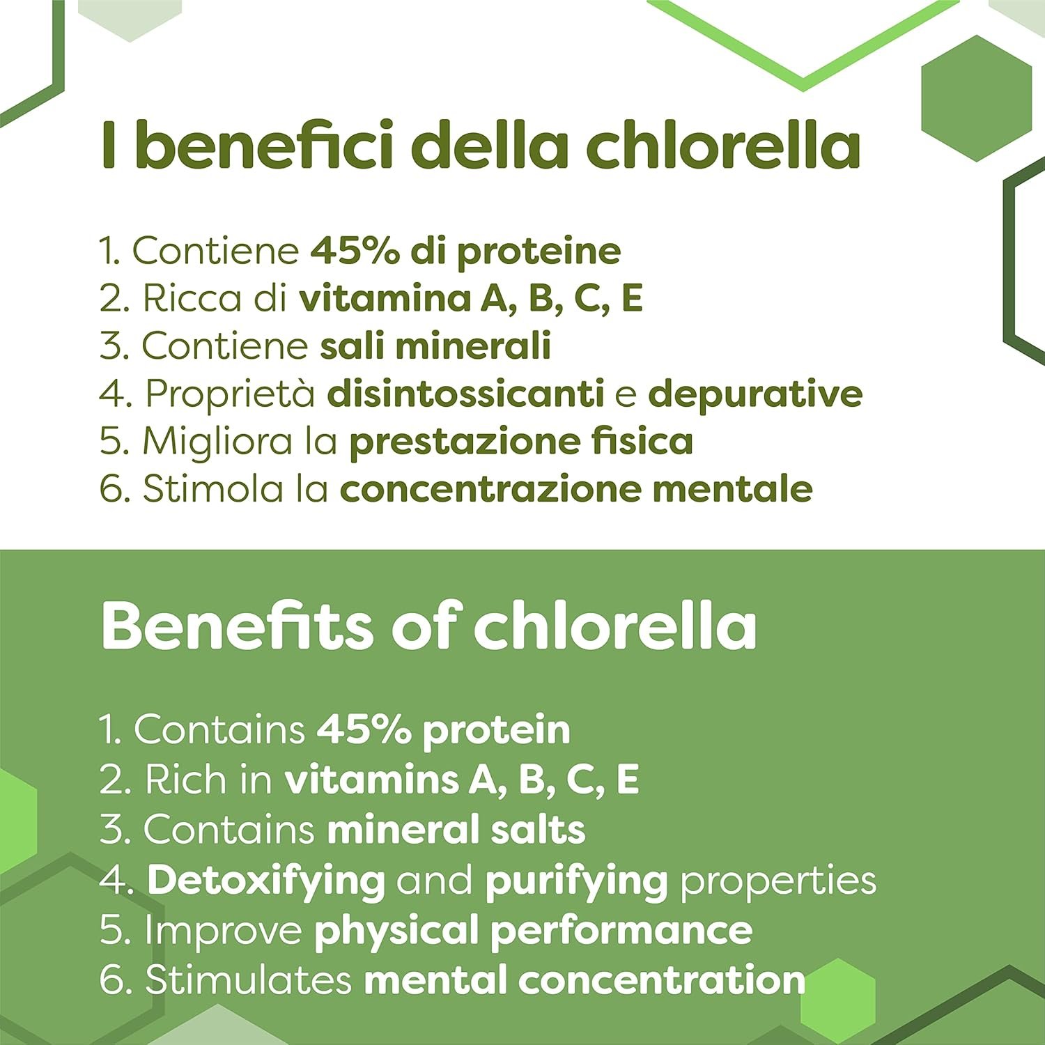 CHLORELLA – Chlorella is a unicellular green algae with a spherical shape, diameter of about 8 microns, contains chlorophyll and chloroplasts. It reproduces very quickly and is native to the brackish waters of equatorial Africa.