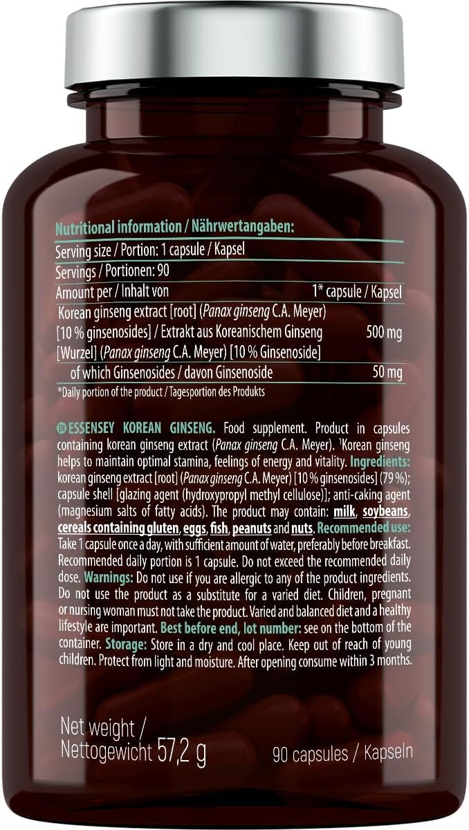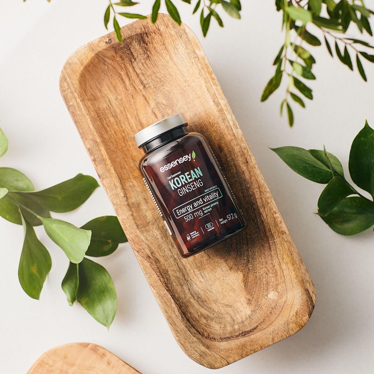 Essensey Korean Ginseng 500mg – 90 Capsules – Natural Energy Boost & Stress Relief Supplement for Active Lifestyles – Immune System Support